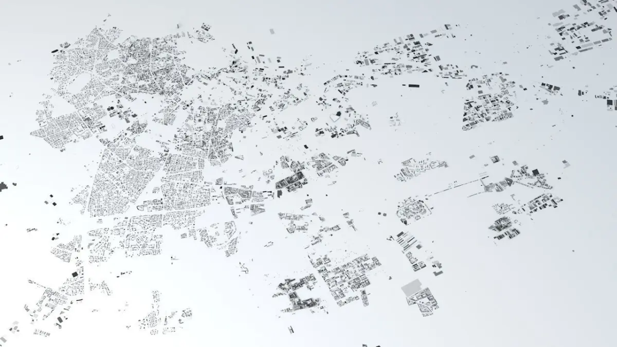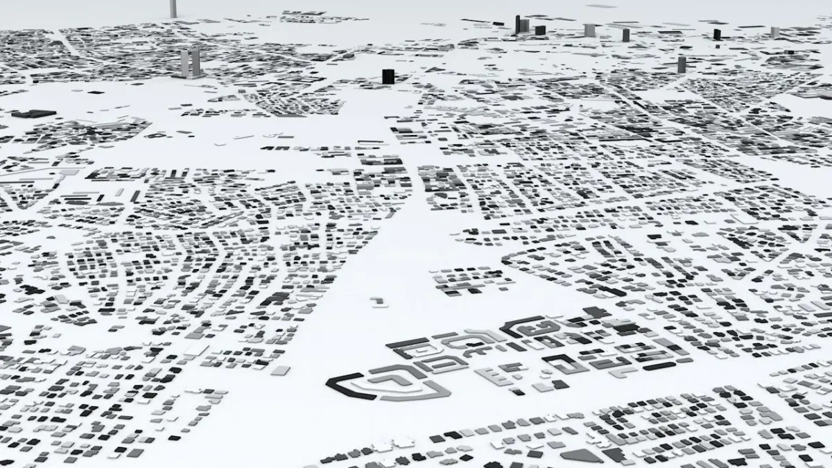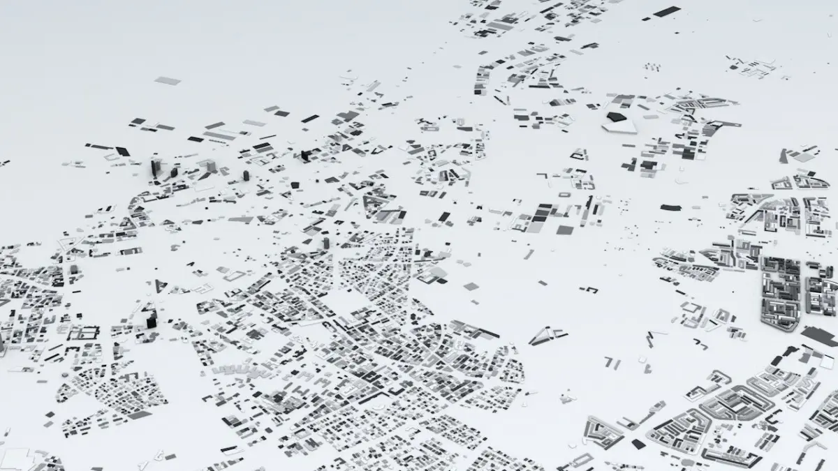 - the model is positioned on a flat surface (all buildings are on the “floor” - no elevation data included)