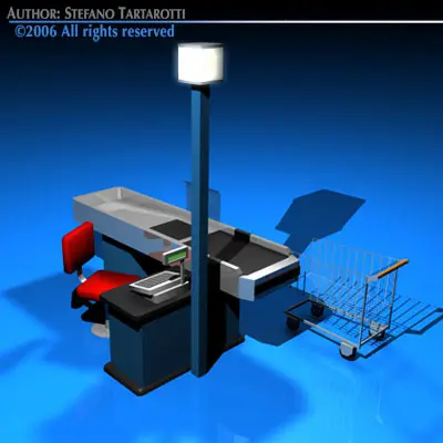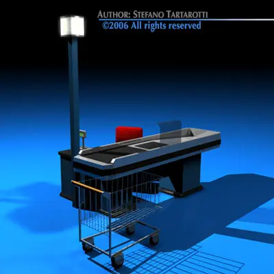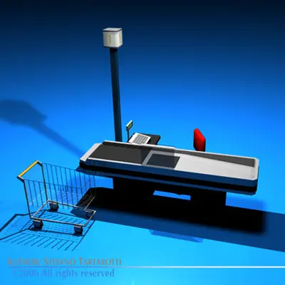 Cashtill checkout counter with shopping cart 3D model