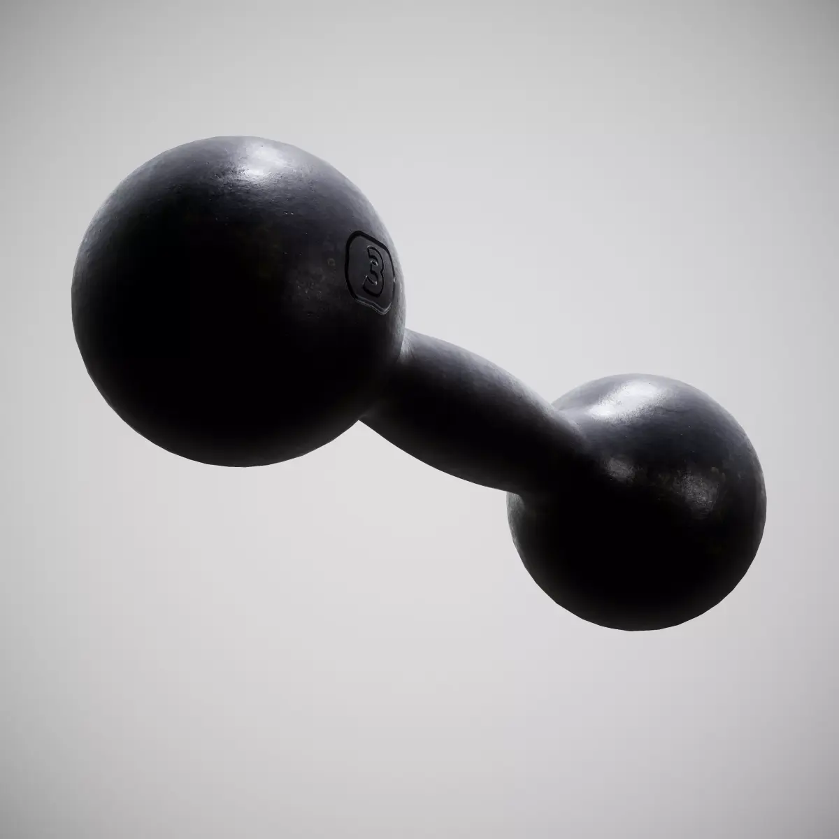 The file includes one object: Cast_Dumbbell, which can be easily duplicated, rotated, and arranged as needed. This makes the model suitable both for single renders and for creating complete workout scenes. Two of the preview images demonstrate examples of duplicated dumbbells in different arrangements.
