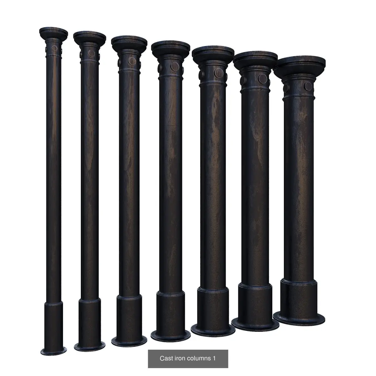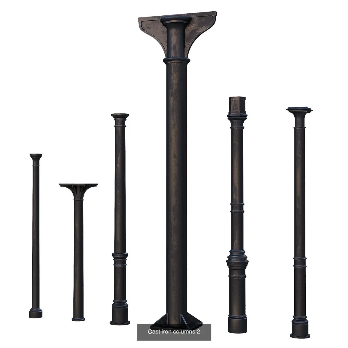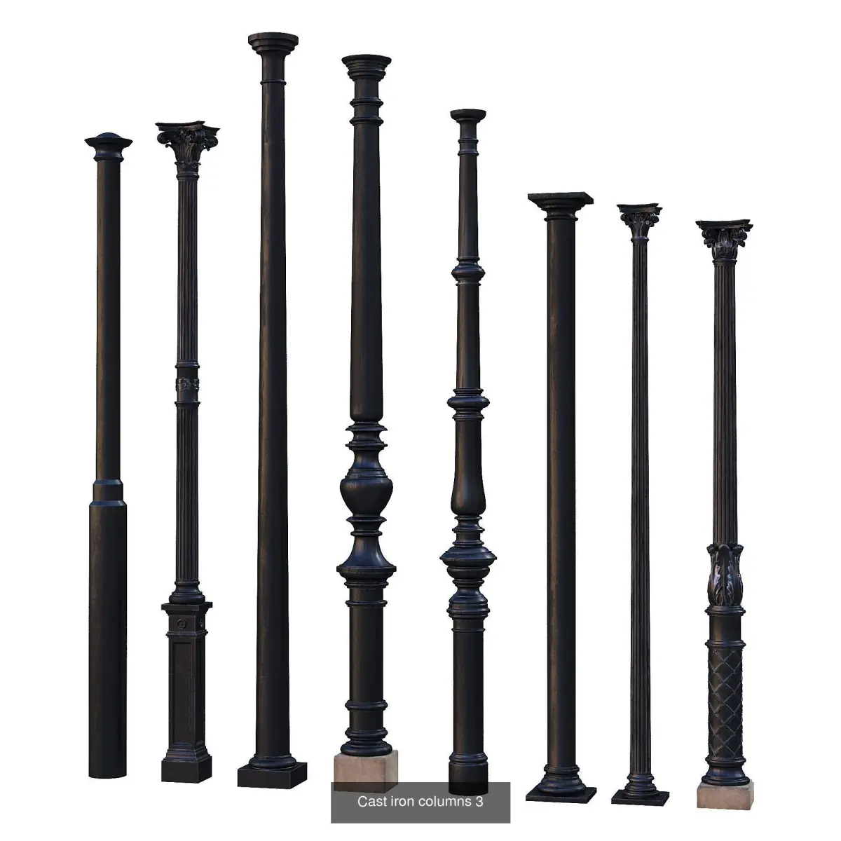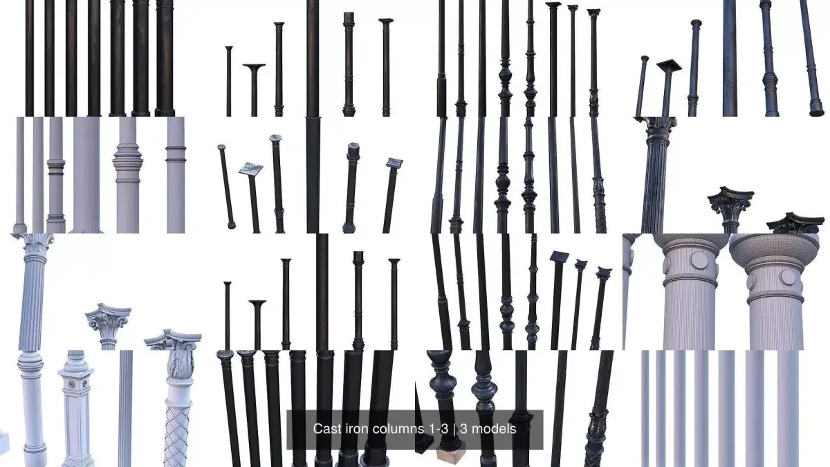 Cast iron columns 1-3, based on the 17th page of the book Барановский Г.В. - Архитектурная энциклопедiя второй половины XIX вѣка. Т.7, Детали, 1904г. (G. Baranovsky - Architectural Encyclopedia of the Second Half of the 19th Century. Vol. 7, Details, 1904.)