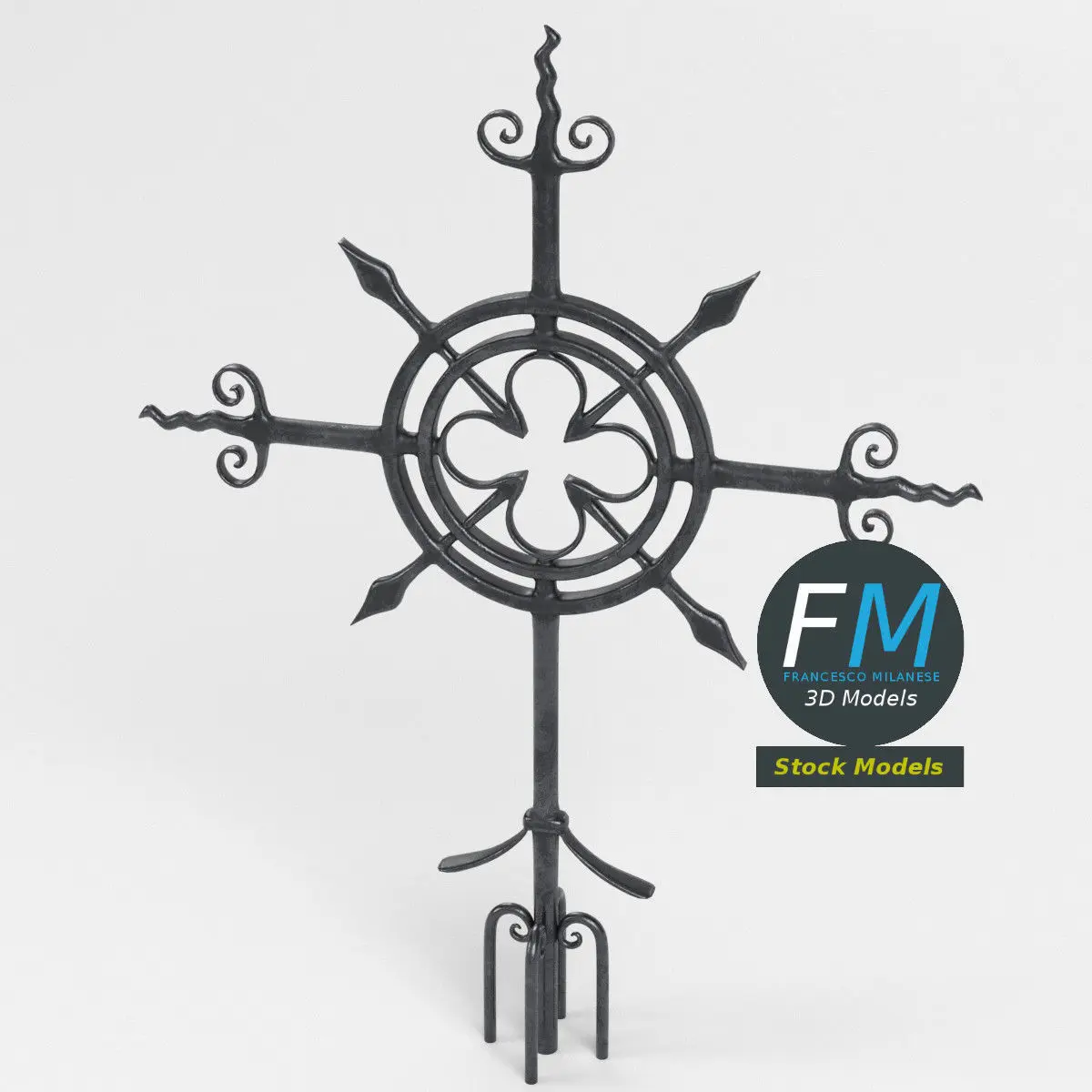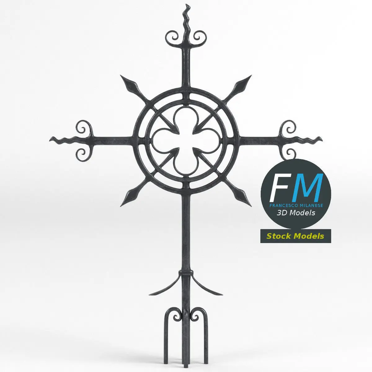 Cast iron Christian Cross 3D Model, seen on top of a church. Production-ready 3D Model, with PBR materials, textures, non overlapping UV Layout map provided in the package.Quads only geometries (no tris/ngons).Easily customizable: UV unwrapped geometries; UV Layout maps provided in the package as png with alpha images.Each Object, Material or Texture provided in the package has a unique, meaningful name.Made in Blender 3.3 with Cycles Principled BSDF PBR shader with textures included (Eevee compatible), then exported to OBJ and FBX; materials and textures made in Substance Painter (Adobe 3D Painter), exported for PBR, Cycles, V-Ray, Unity, Unreal.PROMO IMAGES: the first image has been rendered in Cycles for Blender; in particular, you can find 11+ promo images in this description:
