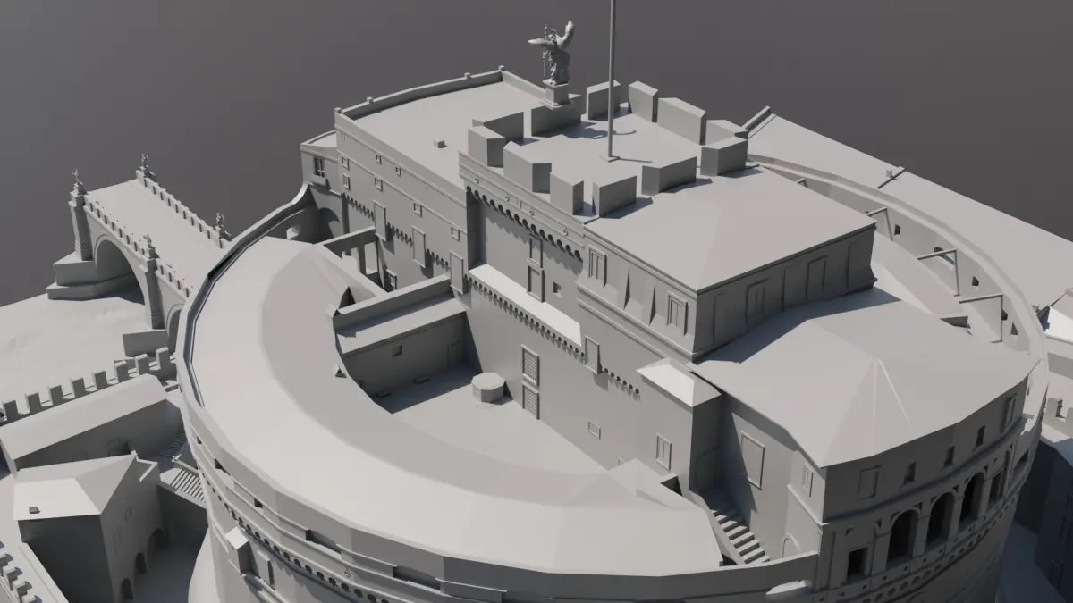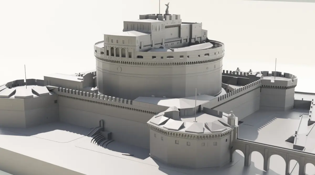 The 3D model of Castel Sant'Angelo meticulously captures the iconic cylindrical structure and historical essence of this ancient Roman fortress. Standing on the banks of the Tiber River in Rome, the model includes detailed renditions of its architectural layers: from the original circular stone base to the majestic central tower. Key elements such as the surrounding walls, ramparts, and battlements are finely textured to evoke the weathered stone and historic masonry.The outer fortifications, complete with small arched windows and strategically placed guard posts, reflect the castle's evolution from a mausoleum to a fortified military fortress. The bridge leading to the castle, with its sculpted angel statues, is also featured, enhancing the historical ambiance of the model. This Castel Sant'Angelo 3D model is versatile, crafted for both close-up detail inspections and distant panoramic views, making it ideal for educational, 3d printing, historical, or interactive media projects.