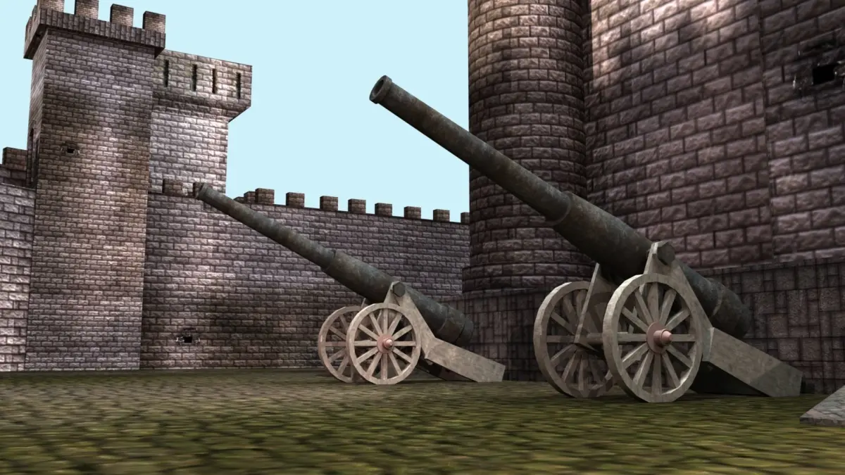 Here in this Castle two shords, two shields, two Hammers & three types of Axes are for your project.Two types of Canon with fire balls are in this Castle to protect the Castle.