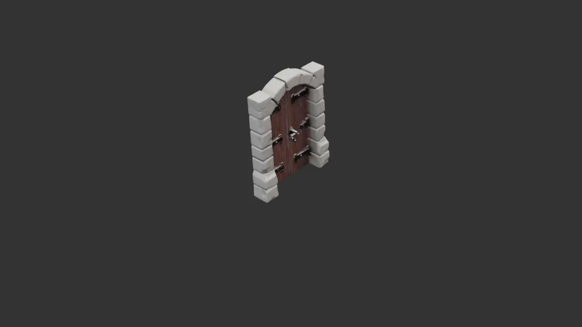 This 3D model features a heavy wooden dungeon door set in a simple stone frame, reinforced with old iron hinges and studs. The design is inspired by medieval castle architecture and is ideal for dungeons, prisons, or fortress interiors. The wood has visible grain, scratches, and cracks, while the metal components display rust and corrosion. This static prop is useful for adding realistic architectural detail to fantasy or historical scenes. It can serve as a functional doorway or as a decorative wall piece in games, simulations, or renders. This door helps build a dark and immersive atmosphere suited for RPG environments or horror-themed settings.