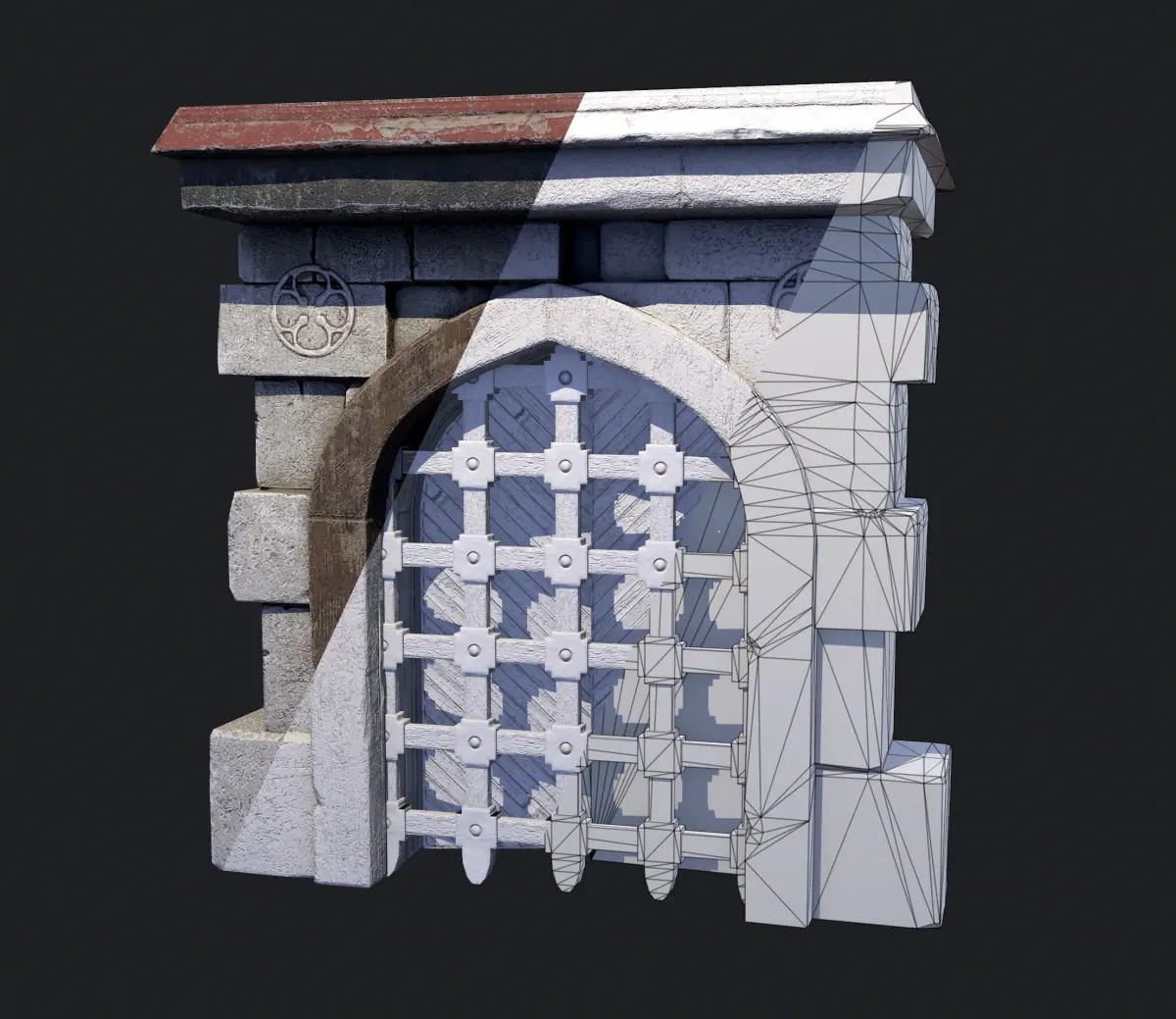 Game ready 3D model: Castle gate, PBR texture (Metal_roughness- Base_Color, Metallic, AO, Normal_OpenGL, Roughness) 4096x4096.Triangles: 4 490 Verts: 5 745