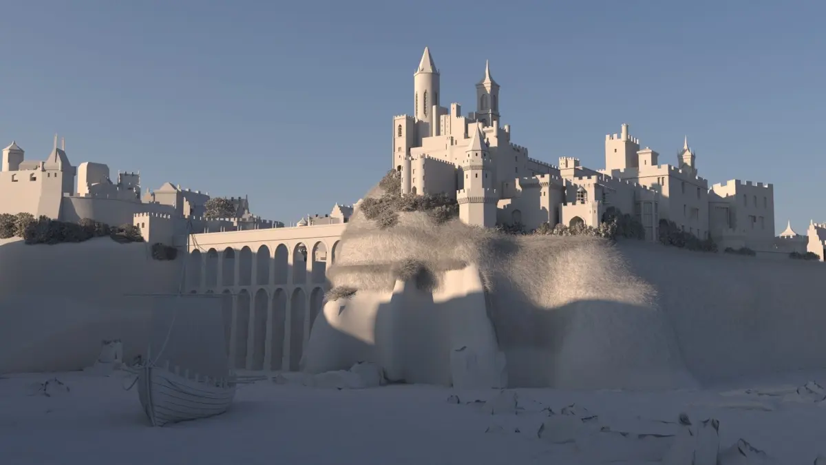 when u downlode this castle . U will get lots of stuff. There u can see castle, old houses, viking boat, Mountains,Grass & trees, vray fur etc. You can use this model in your Historic , experimetal movie and also in showreels and 3D animations.If you cant see any texture assigned. I have uploaded the texture rar.
