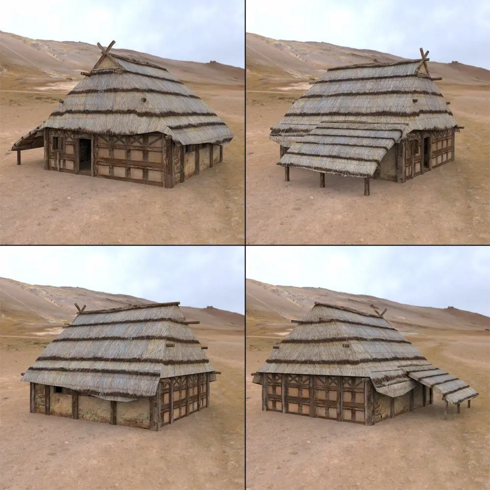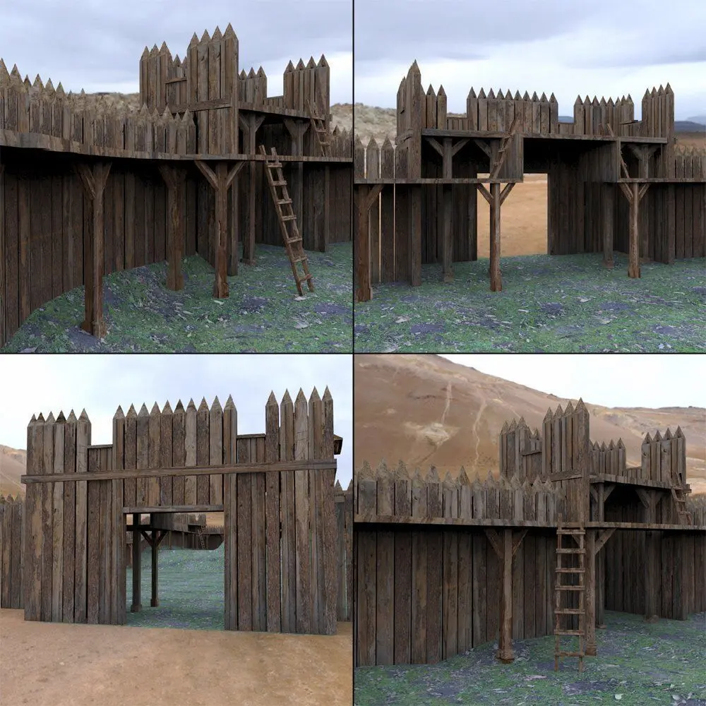 The main castle tower is surrounded by a wooden fence to keep intruders out. Luckily, there are numerous ladders for your defenders and guards to climb up. The main tower itself is further protected by a wooden walkway with an opening gate.The other buildings can be used as merchant storefronts or houses.
