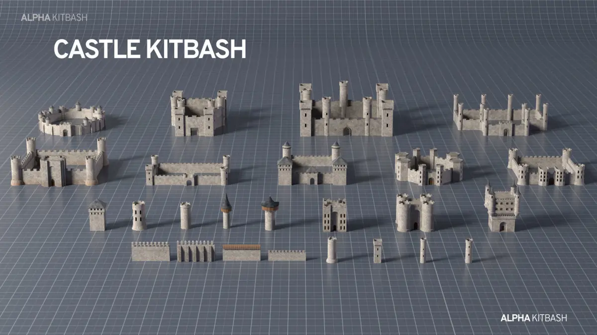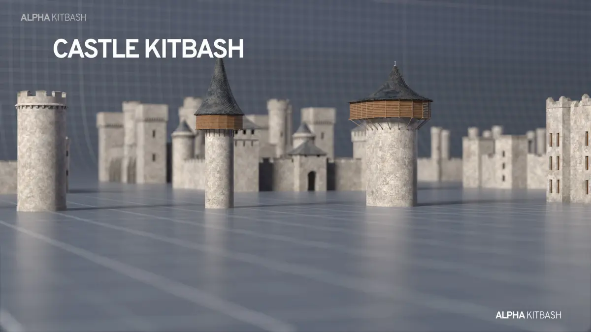 Castle Kitbash, a collection of highly detailed 3D models of Castles and Towers, that you can use in 3ds Max, Blender, Maya, and other 3D software. Castle kitbash includes a variety of buildings such as Castles, towers and some assets and element that you can easily add them into your scene.