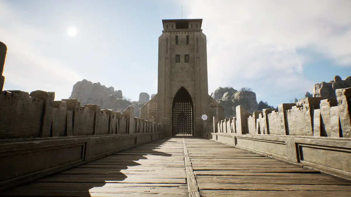 This pack includes a modular castle consisting of walls, towers, gates, and other medieval architectural elements. The castle is set in a vast valley surrounded by a massive canyon, which features a defensive moat with towers. The environment is meticulously detailed, allowing you to easily modify the castle's configuration or the surrounding terrain.