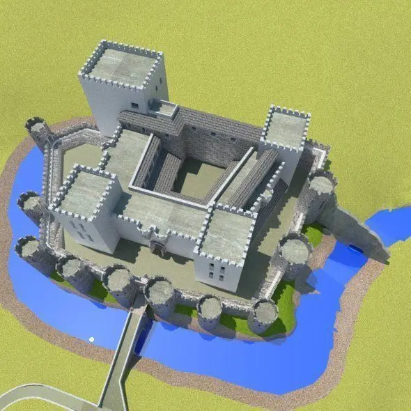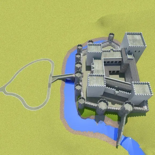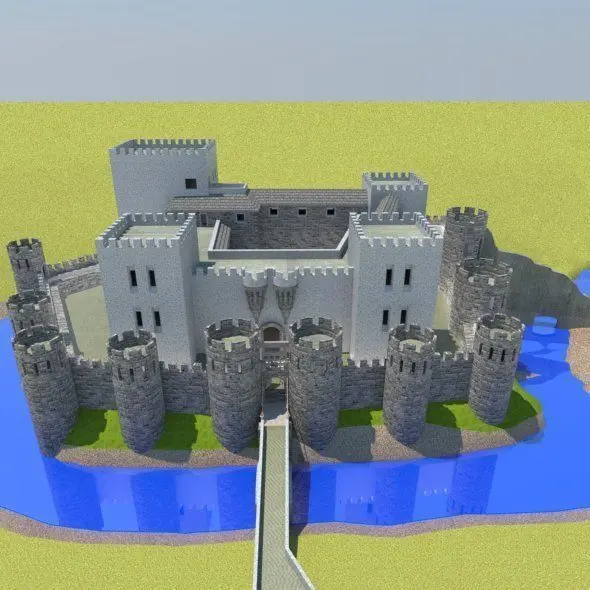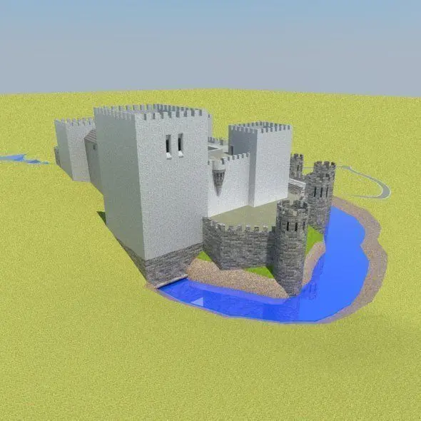 3d model of low poly antique castle,of the middle era,with all parts separatelly made:gate,tower,river,entrance,