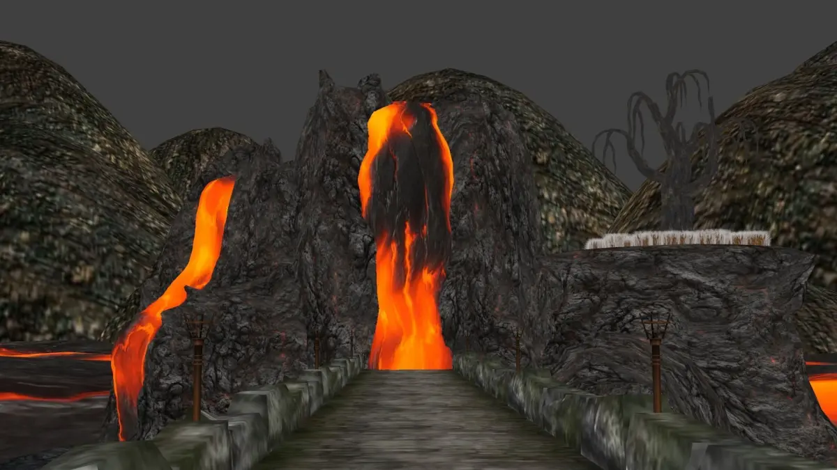 Welcome to hell with this fantastic castle filled with mountain and lava sea