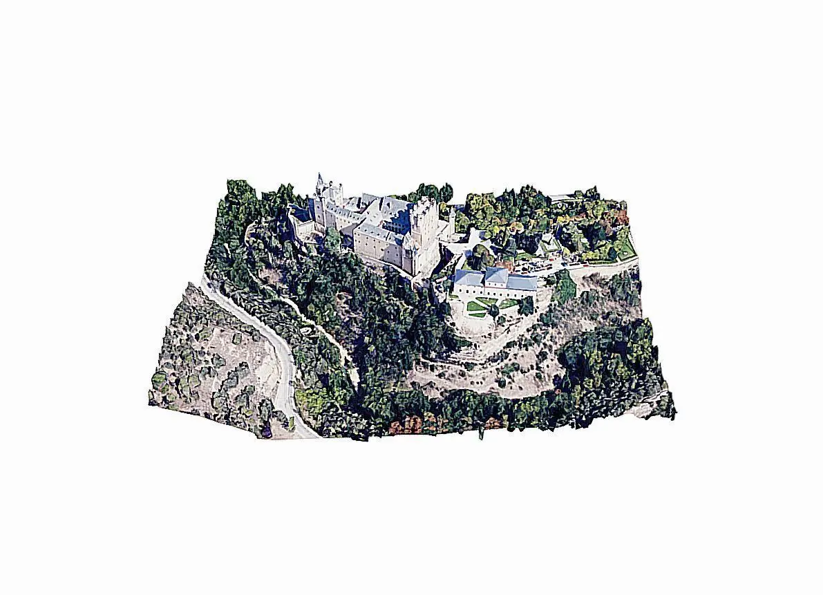 The Alcázar of Segovia (literally, “Segovia Fortress”) is a medieval castle located in the city of Segovia (Castile and León, Spain), a World Heritage Site by UNESCO. Rising out on a rocky crag above the confluence of two rivers near the Guadarrama mountains, it is one of the most distinctive castle-palaces in Spain by virtue of its shape – like the bow of a ship. The alcázar was originally built as a fortress but has served as a royal palace, a state prison, a Royal Artillery College and a military academy since then.