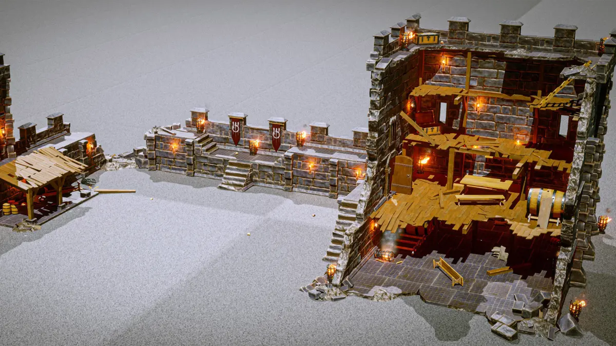Ruins (walls, wooden boards, stones, windows, doors and more)