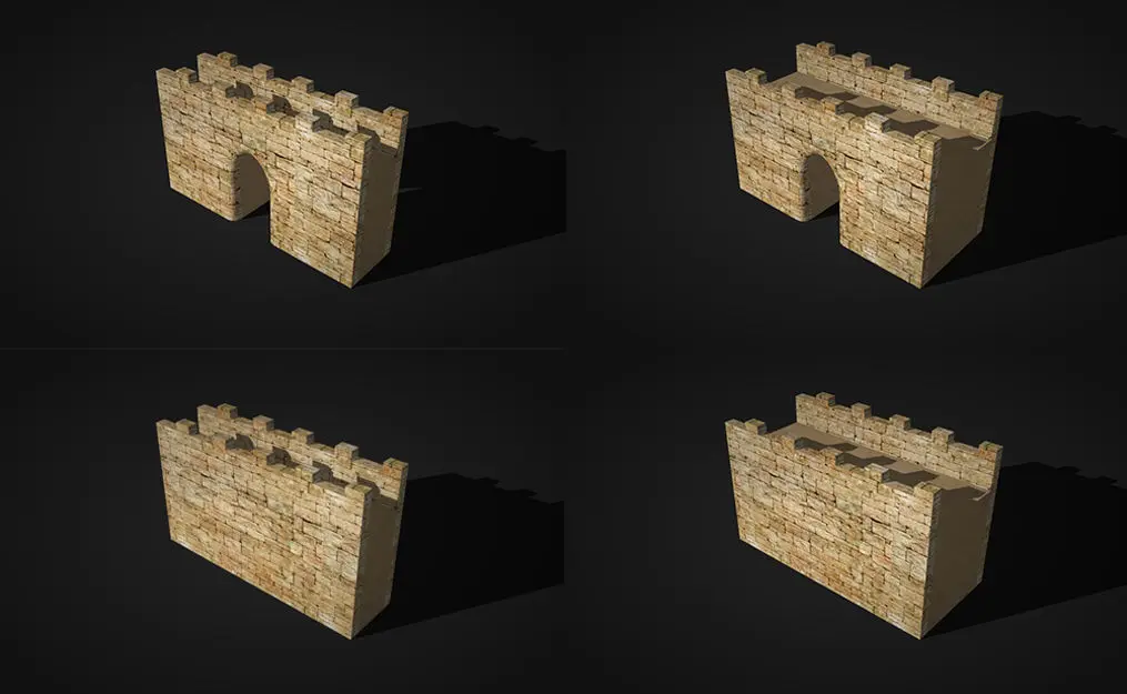 Old castle wall Collection walls ,gates,towersblender and sketchup filetextrue and bump,normal map include in texture.rar filelow poly real texturedestroyed tower and wallfor games