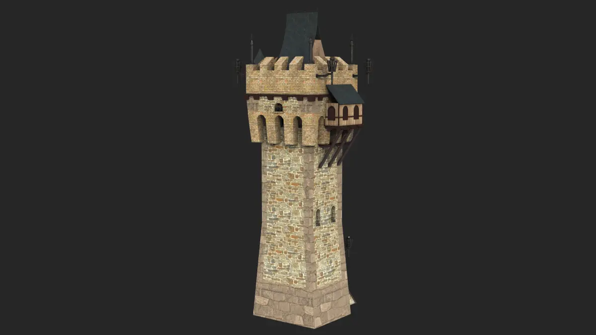The Photorealistic 3D model of Castle Watch Tower 01. This model is suitable for any visual production - broadcast, high-res film close-ups, advertising, games, design visualization, forensic presentation, etc.