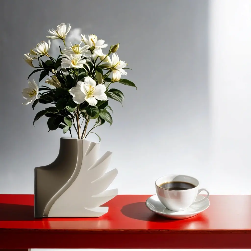 The smooth curves contrast with the sharp angles of the wing, giving the vase a dynamic energy that feels both balanced and invigorating. This design element makes it an ideal piece for modern interiors, adding a touch of artistry to a room without overwhelming the decor. The matte texture amplifies its sophisticated appearance, inviting viewers to experience it both visually and tactilely.