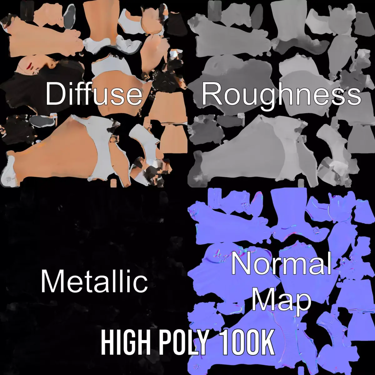This 3D model pack features a female character in casual attire, perfect for a variety of applications such as games, animations, and virtual presentations. The model exudes a contemporary, stylish aesthetic that can be adapted for different scenarios. Each model has 3 levels of detail: low-poly (1000 triangles for mobile), middle-poly (10,000 triangles for environment), and high-poly (100,000 triangles), which allows for the use of this model in production rendering (such as 3ds Max, Maya, Cinema4D, Blender, Vray/Corona/Cycles, and all other), game engines (Unity and Unreal compatible), and interactive presentations, providing a choice of detail based on the LOD System principle. The model's textures are PBR, Diffuse, NormalMap, and reflection/roughness/metallic, suitable for any modern rendering engine. All models accurately unwrapped with no overlapping UV. All textures are 4096*4096 in size. If you like this model, please like and leave a comment!