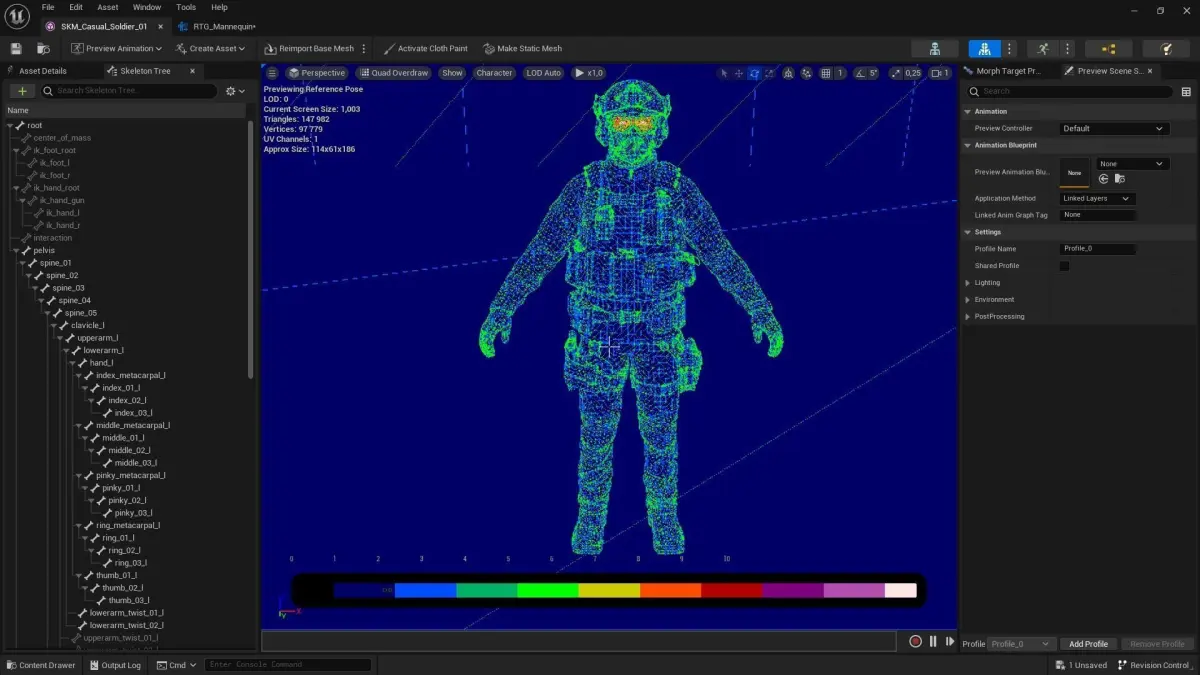 Bodies have basic Face Morph Targets All assets have a single skeleton and they are compatible with each other. Number of Textures: 80 Number of Materials: 30 Types of materials and texture maps: PBR