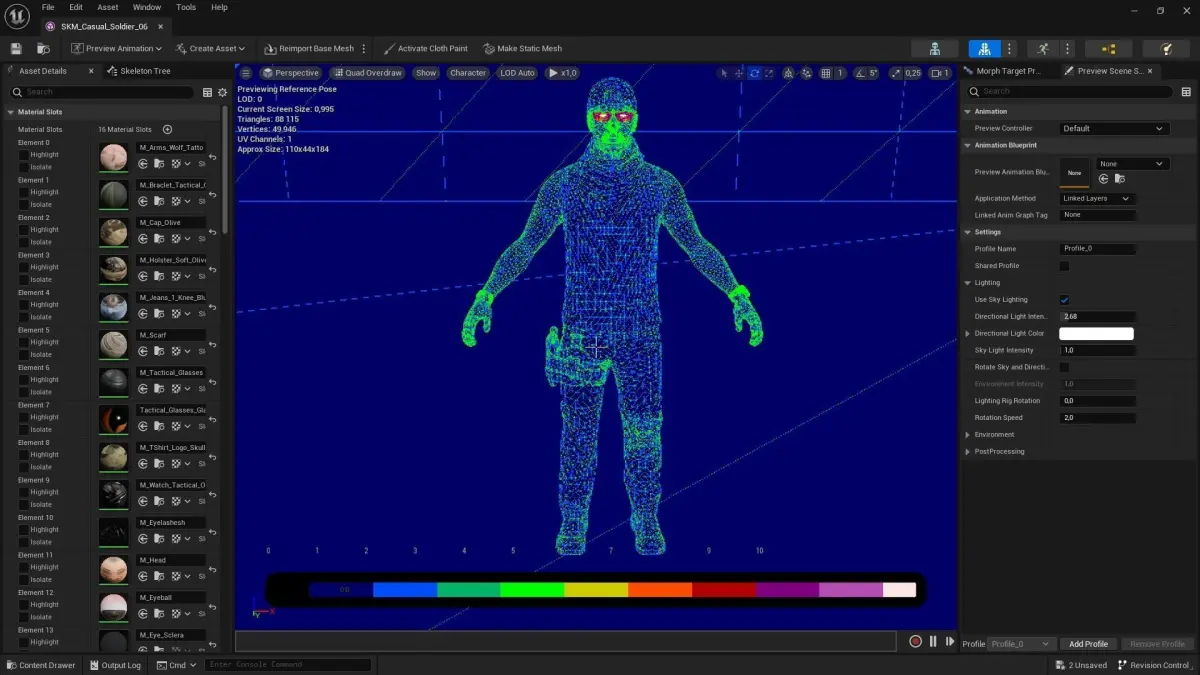 Bodies have basic Face Morph Targets All assets have a single skeleton and they are compatible with each other. Number of Textures: 65 Number of Materials: 25 Types of materials and texture maps: PBR