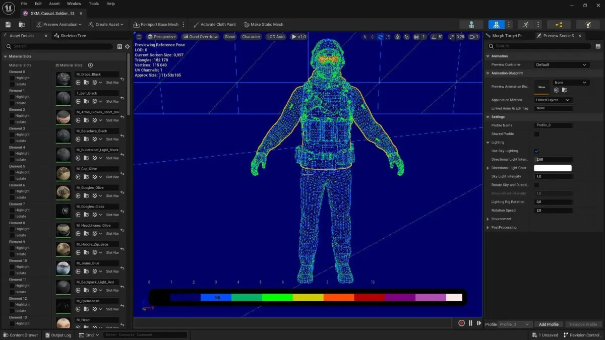 Bodies have basic Face Morph Targets All assets have a single skeleton and they are compatible with each other. Number of Textures: 81 Number of Materials: 35 Types of materials and texture maps: PBR