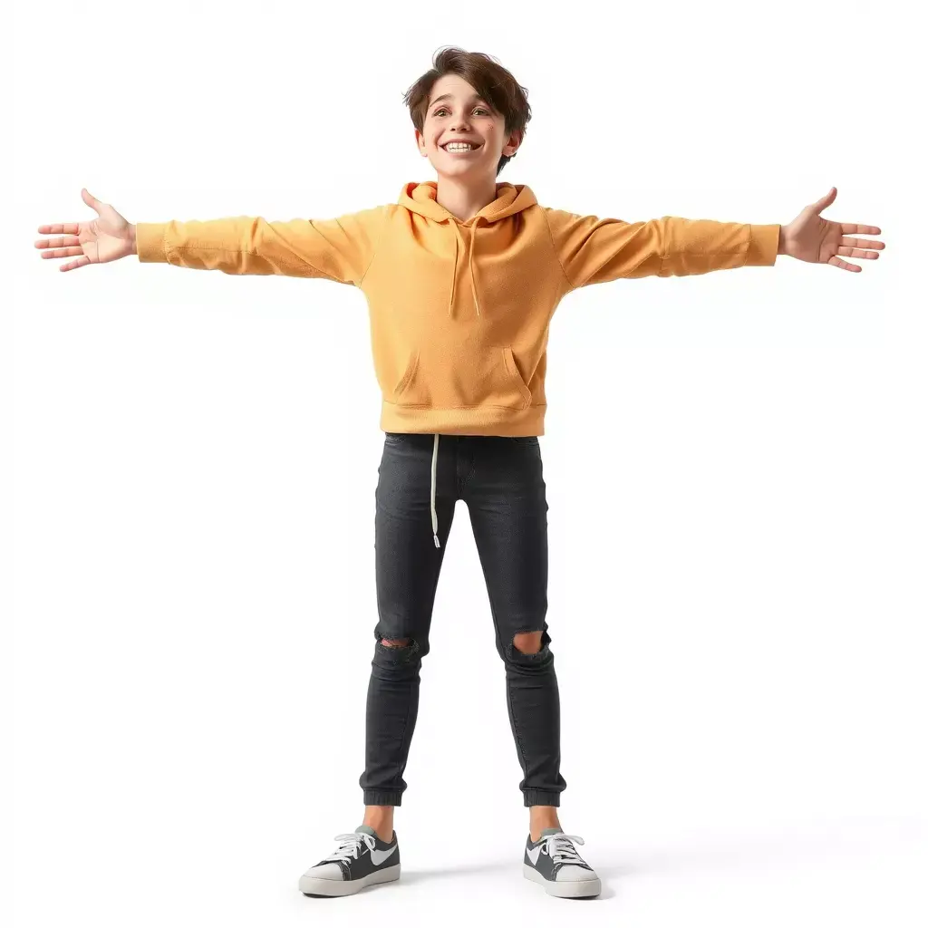 A realistic model of a youth in a casual outfit featuring a bright orange hoodie, black ripped jeans, and sneakers. Ideal for animations, games, or virtual fashion shows. Each model has 3 levels of detail: low-poly (1000 triangles for mobile), middle-poly (10,000 triangles for environment), and high-poly (100,000 triangles), which allows for the use of this model in production rendering (such as 3ds Max, Maya, Cinema4D, Blender, V-Ray/Corona/Cycles and all others), game engines (Unity and Unreal compatible), and interactive presentations, providing a choice of detail based on the LOD System principle. The model's textures are PBR, Diffuse, NormalMap, and reflection/roughness/metallic, which are suitable for any modern rendering engine. All models accurately unwrapped and have no overlapping UVs. All textures are 4096*4096 in size. If you liked the model, please leave a like and comment.