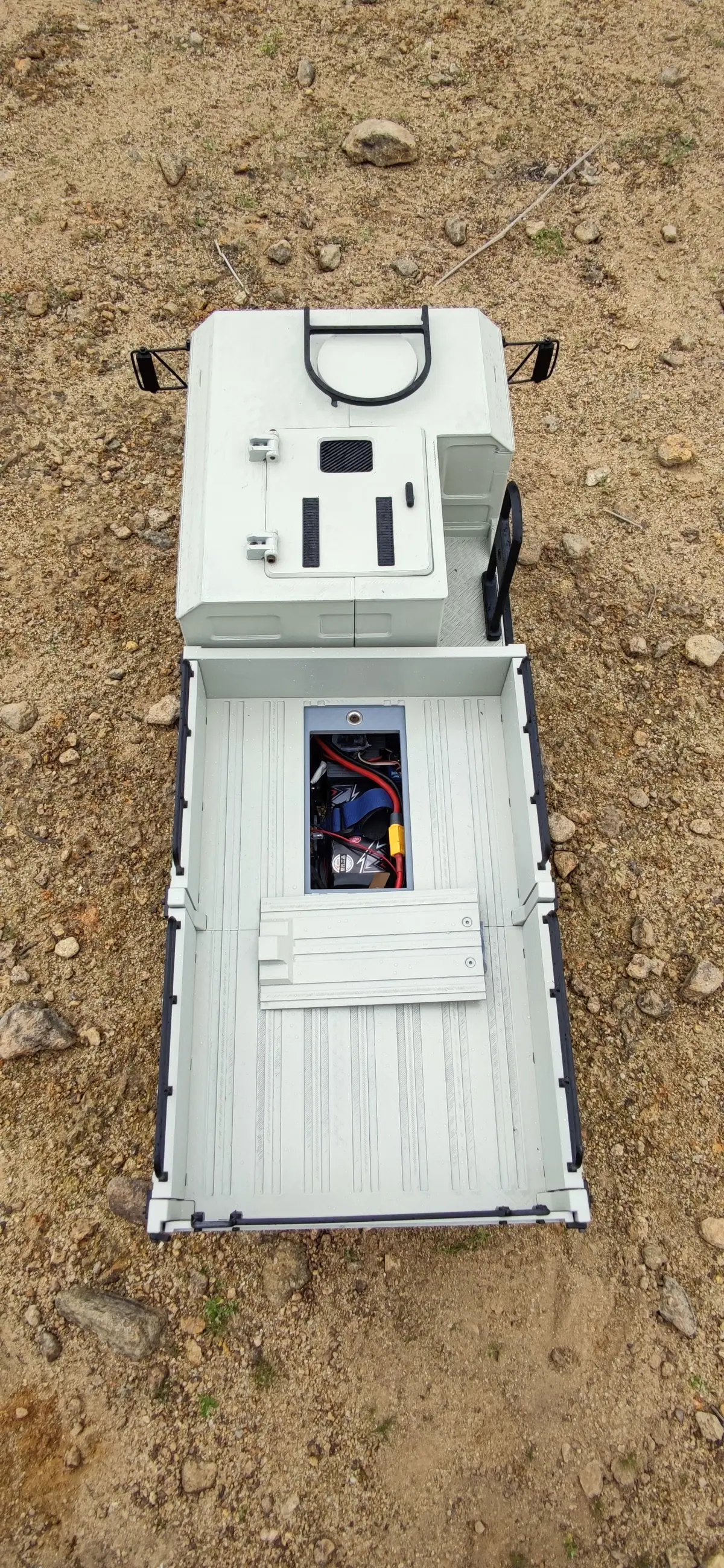 To help access the battery, a battery access hatch is integrated into the bed which is secured using magnets. This means very efficient and hassle free battery changing on the trail.