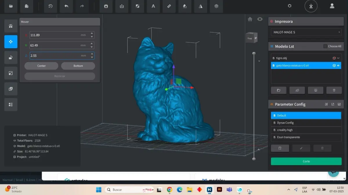 The model was printed using a Creality Halot Mage SDimensions: 146.65x119.15x216.06 mmThe file dimensions match the original object's measurements.