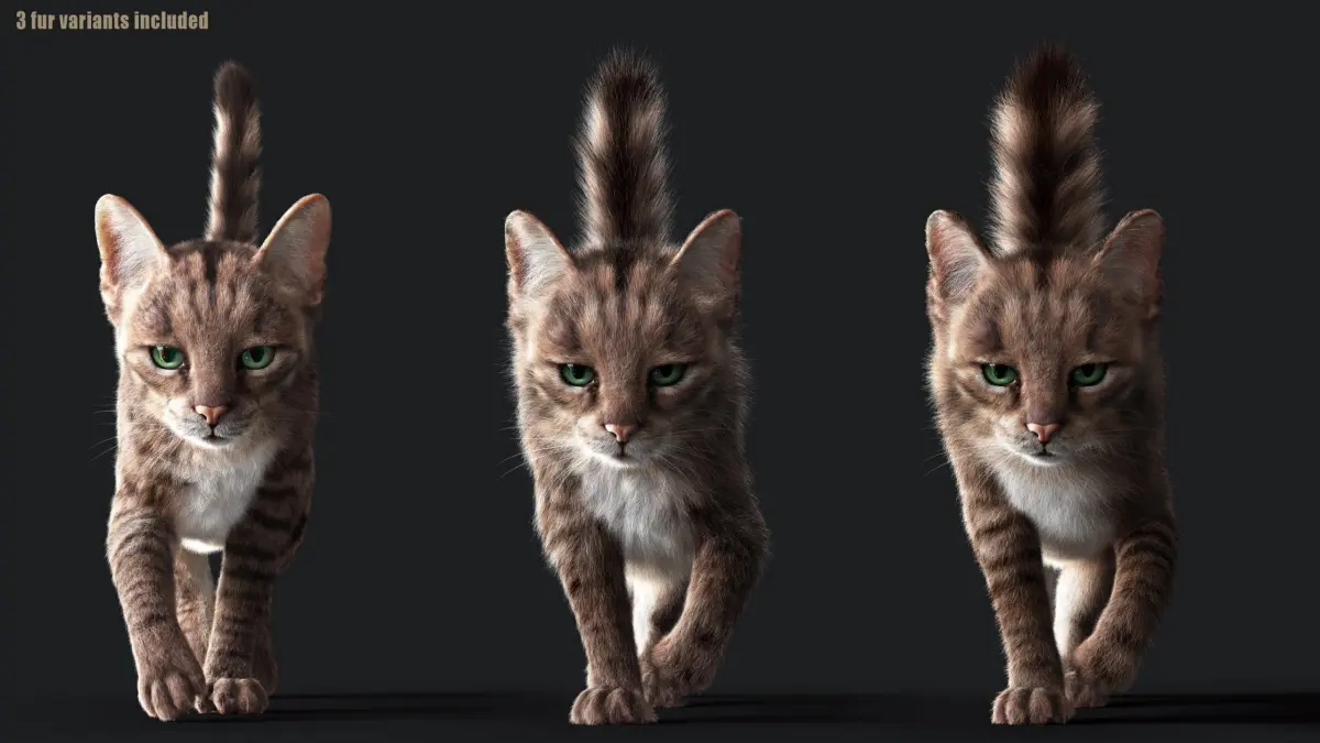 – eyes, corneas, gum/teeth, tongue and claws are modeled separately.