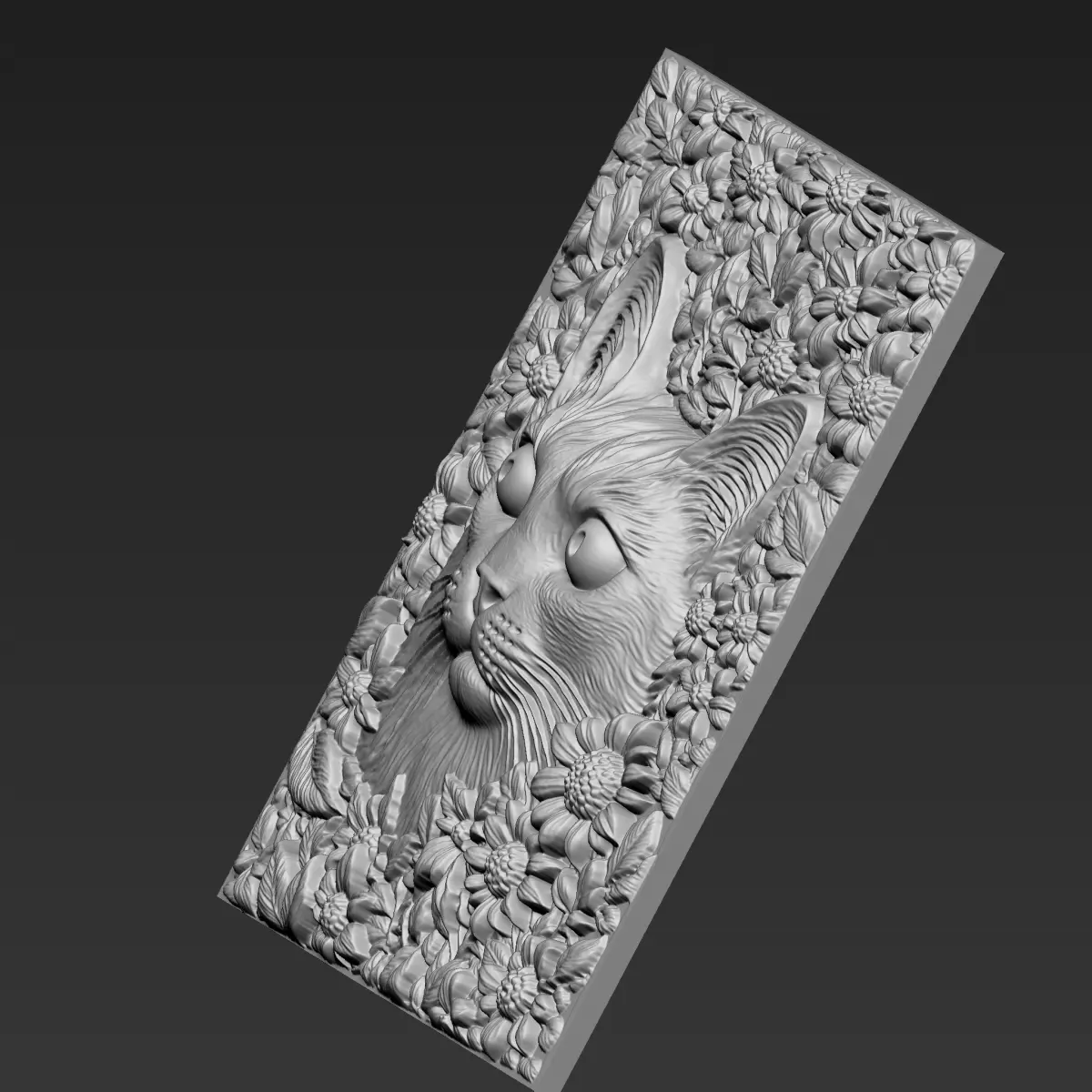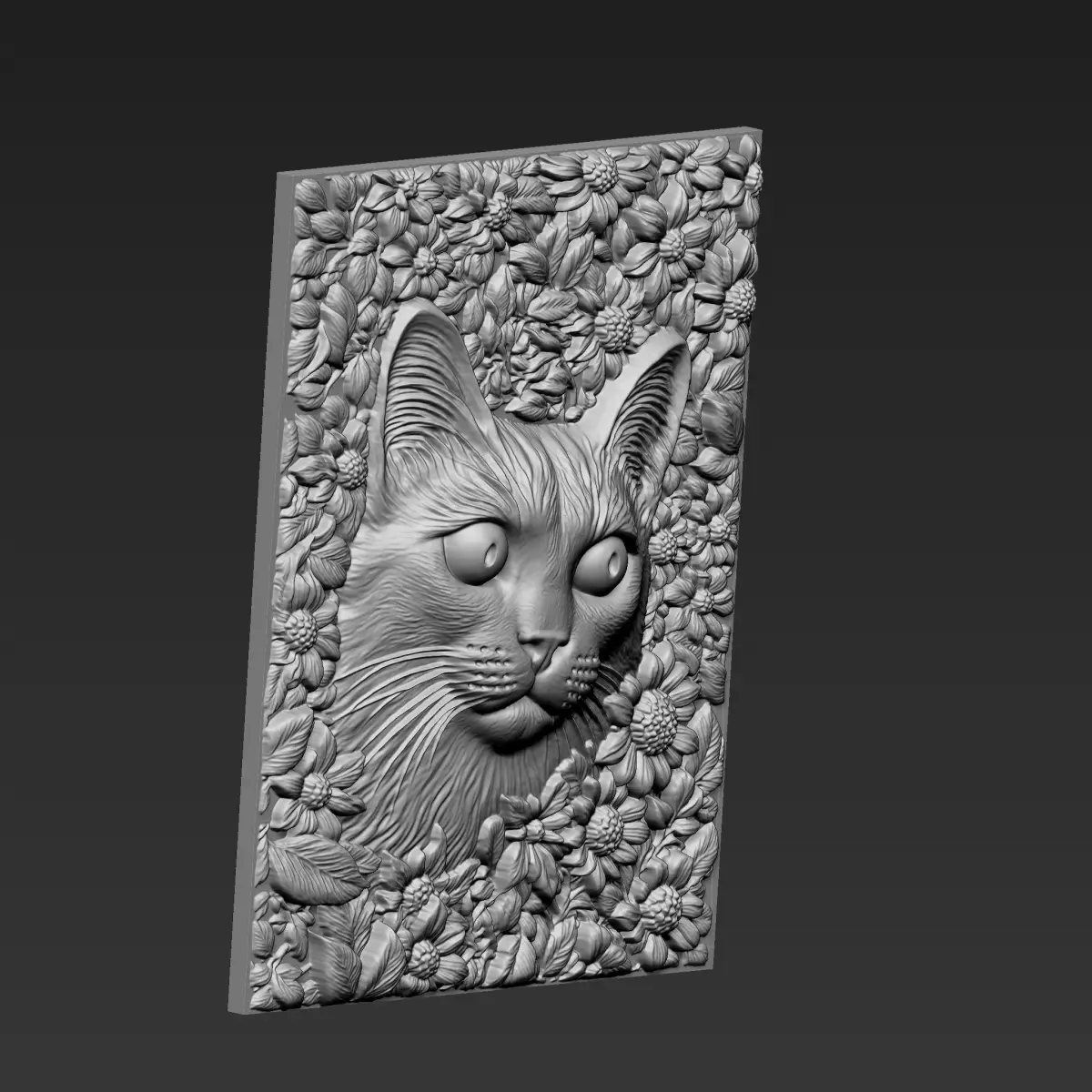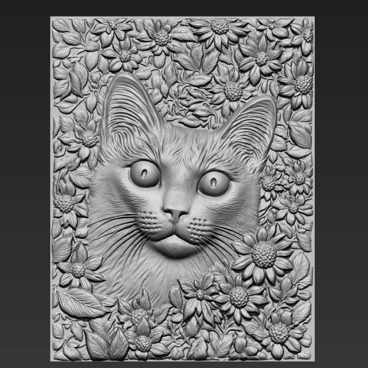 3d model of bas-relief of a cat head with flowers background for CNC Router Carving or 3d printer.OBJ,STL format.Note:All the models are not for resale,it is illegal!