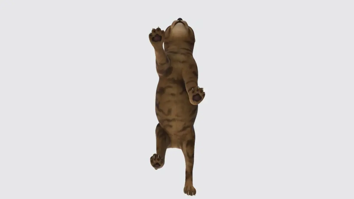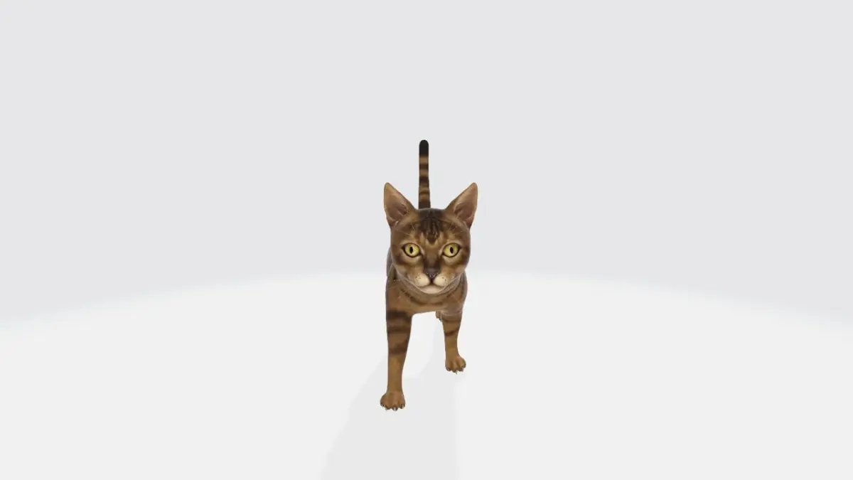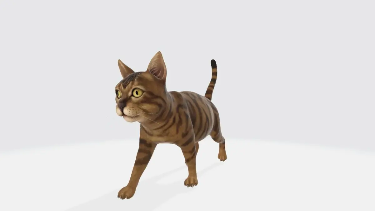 The cat model features a slender yet athletic body, accurately sculpted muscles, and a well-defined skeletal structure. Each limb showcases a seamless blend of sinewy strength and delicate articulation, allowing for a wide range of poses and animations. The paws are meticulously sculpted, with individual digits and subtle paw pads that add an extra layer of realism.