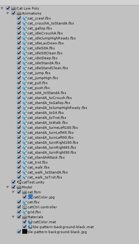 Animation List:attackrunsneaktrotwalkjumpjump highpullpushturn left 180, 90, 45turn right 180, 90, 45walk to standwalk to trotcrouch to standsit to standstand to crouchstand to runstand to jump high readystand to sitstand to trotstand to walkidle crouchidle jump high readyidle lay downidle sitidle sit cleanidle sleepidle standidle stand clean