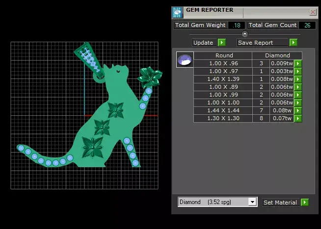 This pendant showcases a cat silhouette design in gold, decorated with floral motifs along its body and sparkling diamonds on the tail, legs, and paw. The cat is playfully holding a flower, giving the piece a charming and artistic touch. The bail is also diamond-studded, adding extra brilliance to the design.