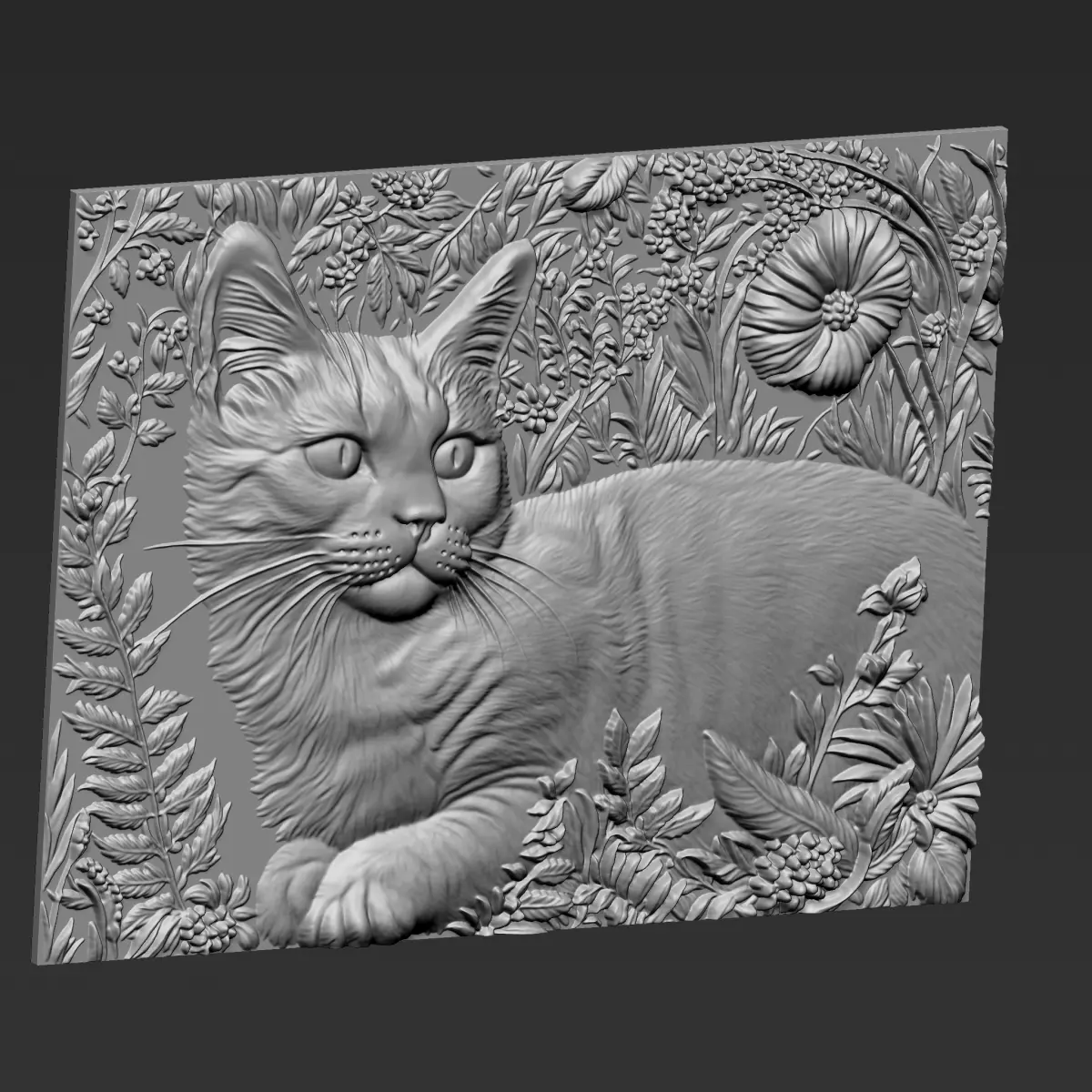 3d model of bas-relief of a cat ready for CNC Router Carving or 3d printer.OBJ,STL format.Note:All the models are not for resale,it is illegal!