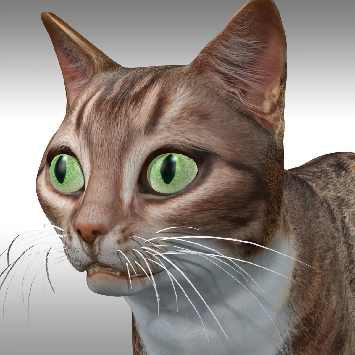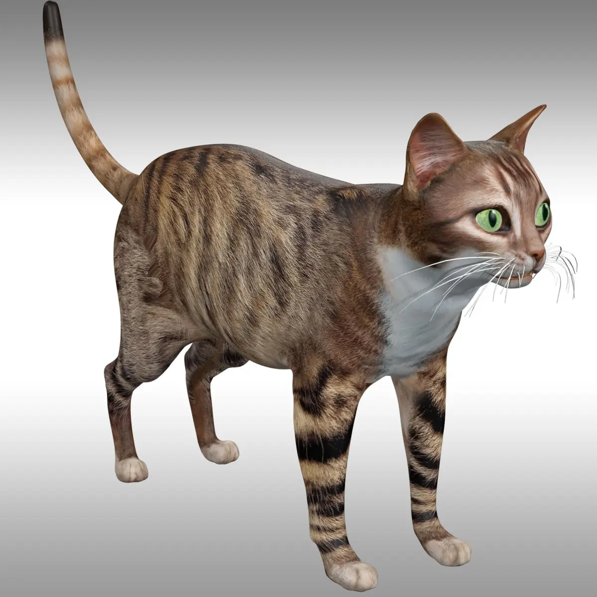 Realistic Grey Tabby Housecat Rigged 3d Model with texture and rig.