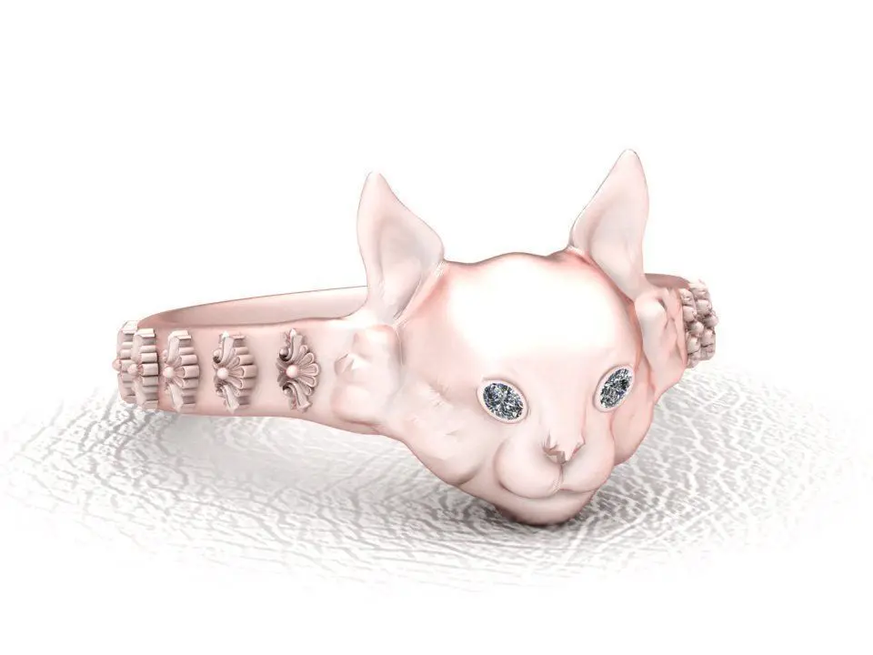 Celebrate your love for felines with this charming cat-inspired ring, meticulously crafted in polished gold. The band features a sculpted cat head at its center, complete with sparkling gemstone eyes, and detailed paw prints encircling the shank. This playful yet elegant design captures the affectionate spirit of cats and makes a perfect accessory for pet lovers, animal advocates, or anyone seeking a unique and whimsical touch of luxury.