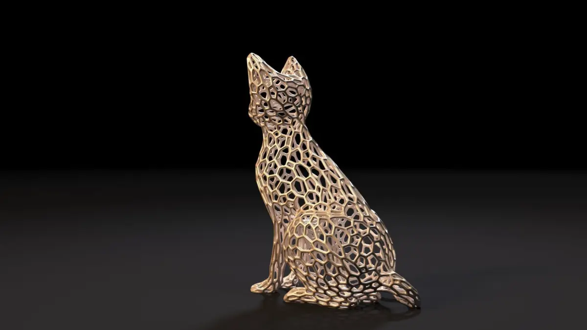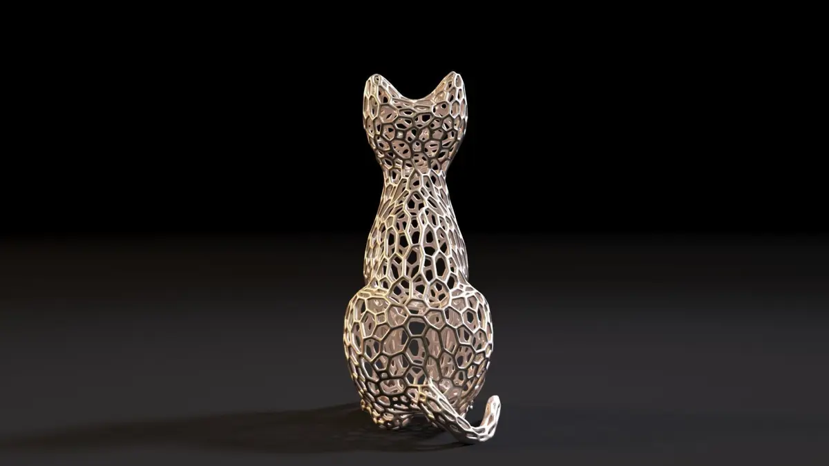 The model is a stylised figure of a cat, made in the unique and modern Voronoi style. The shape of the cat is outlined using characteristic meshes that create a ‘split’ surface effect. This technique gives the model an interesting visual textural pattern that will look spectacular from different angles.