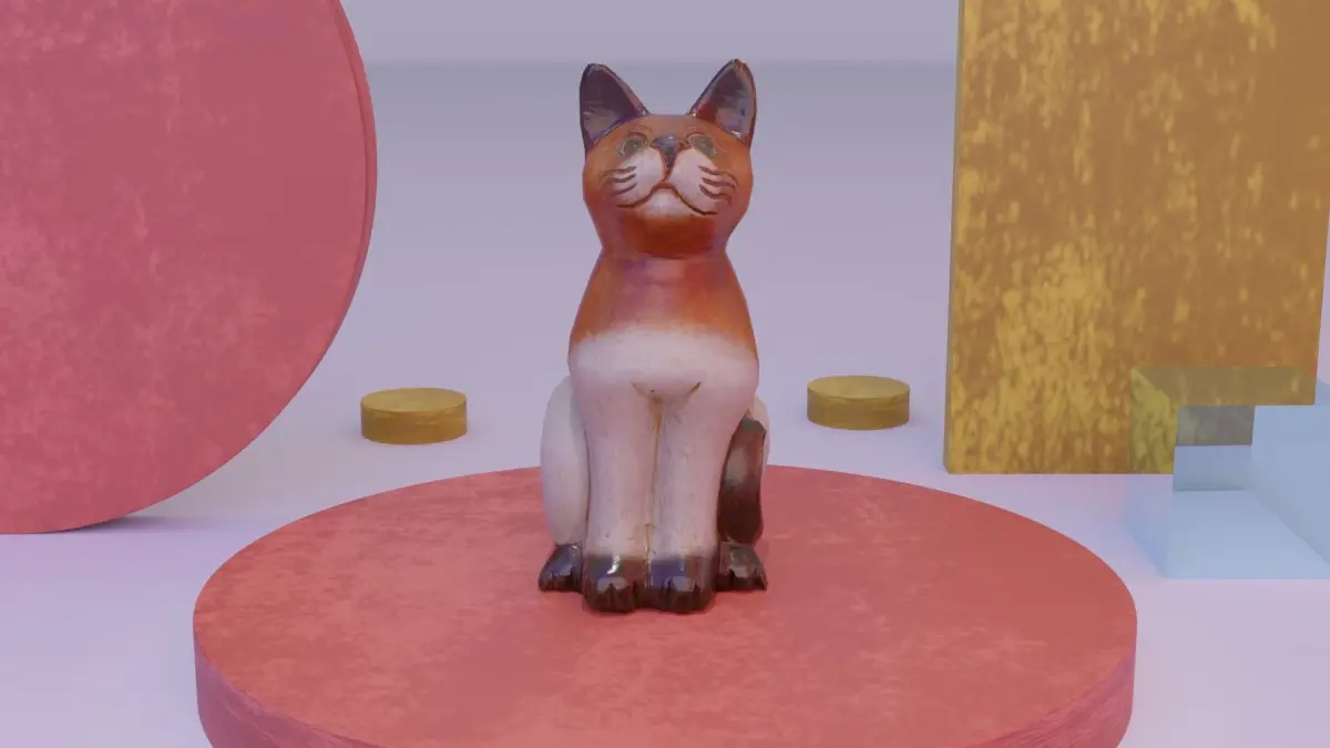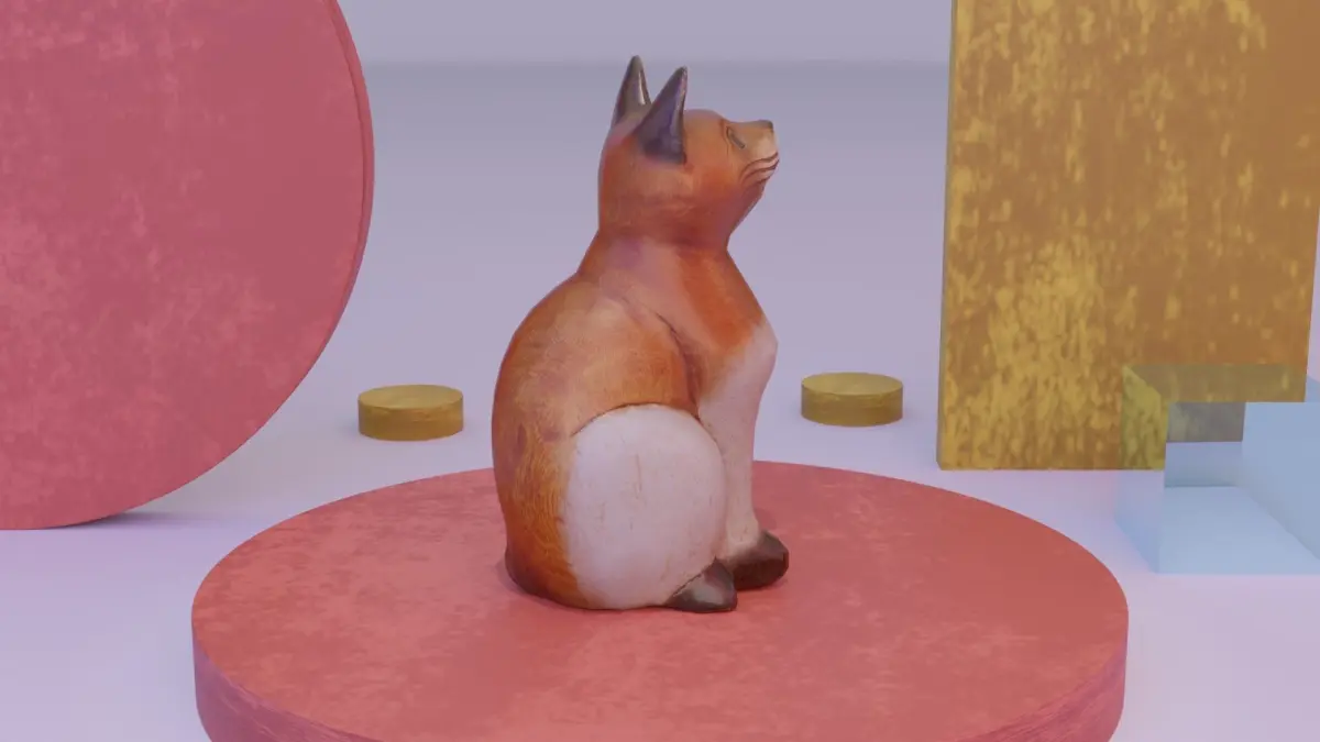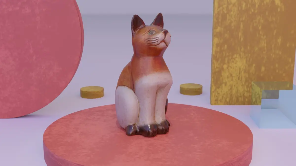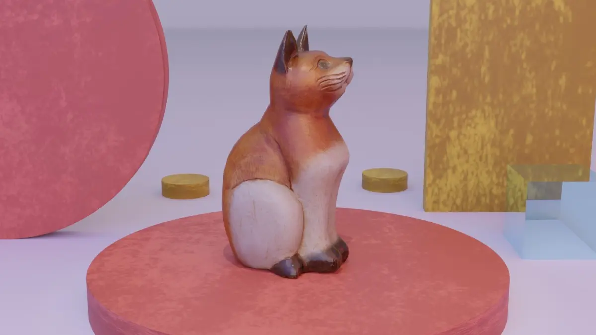 Cat wood statue 01 low-poly 3D model
