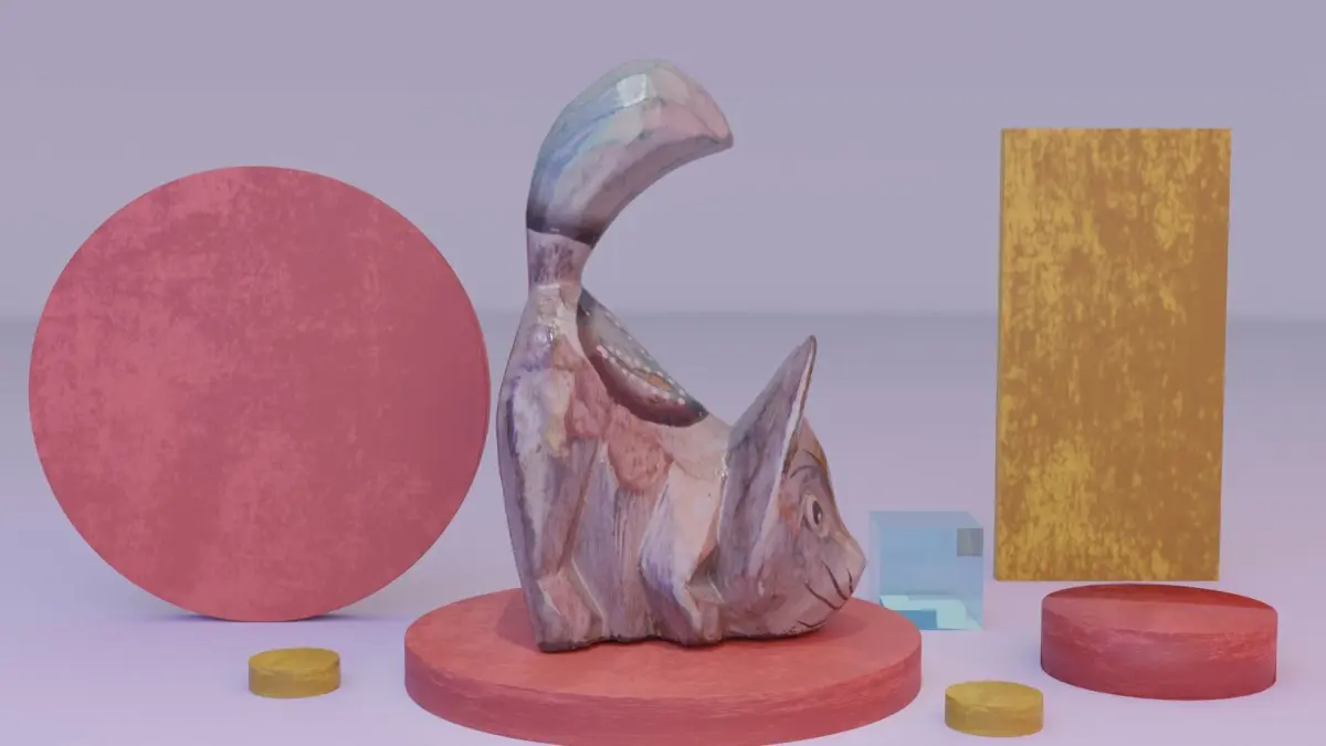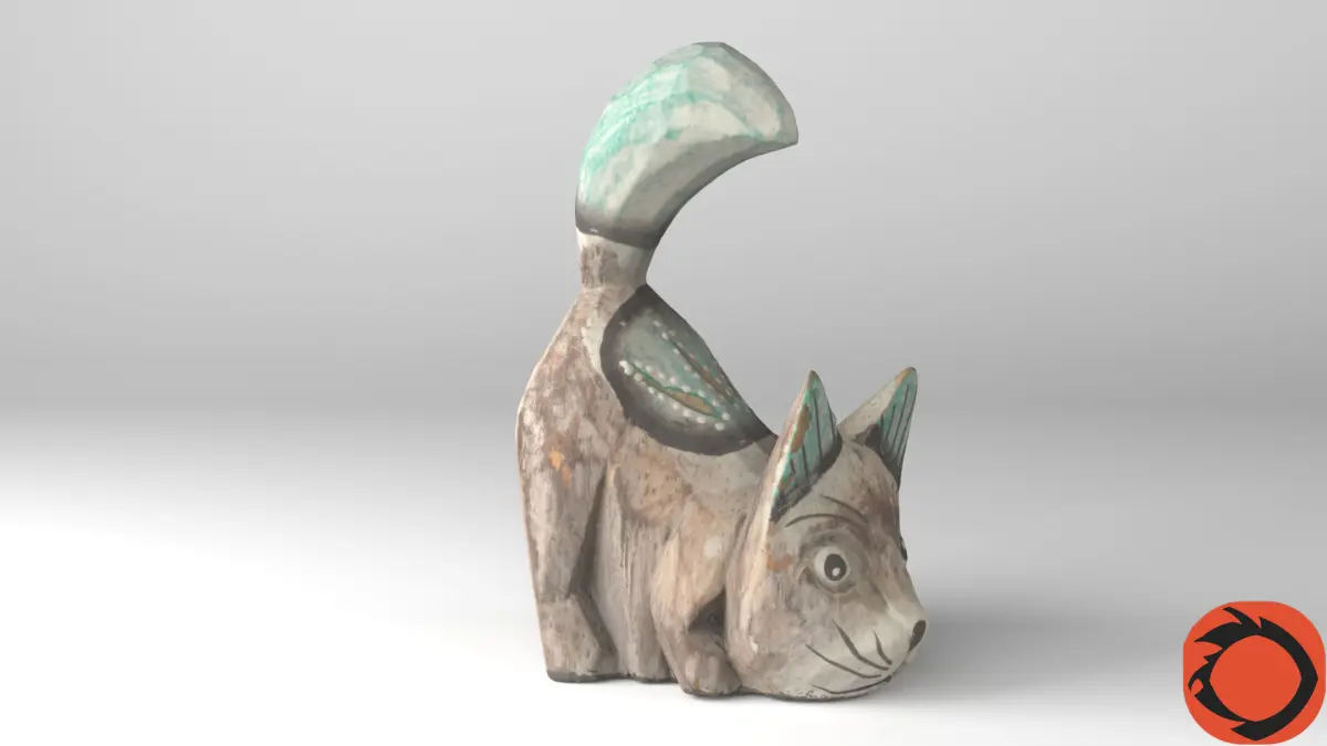 This is a photorealistic high-poly 3D model of the handmade cat wood statuette.