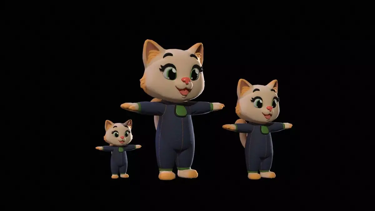 - Low-poly model of the character Cat3Pack3