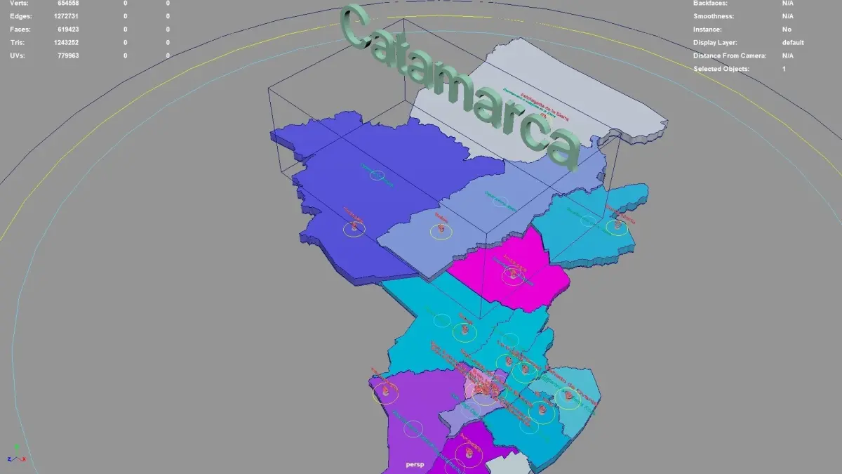 Catamarca regions : The model is divided according to the administrative region of Catamarca. Each region is clearly separated so you can easily isolate it or change the colors. Names are also editable and separate.