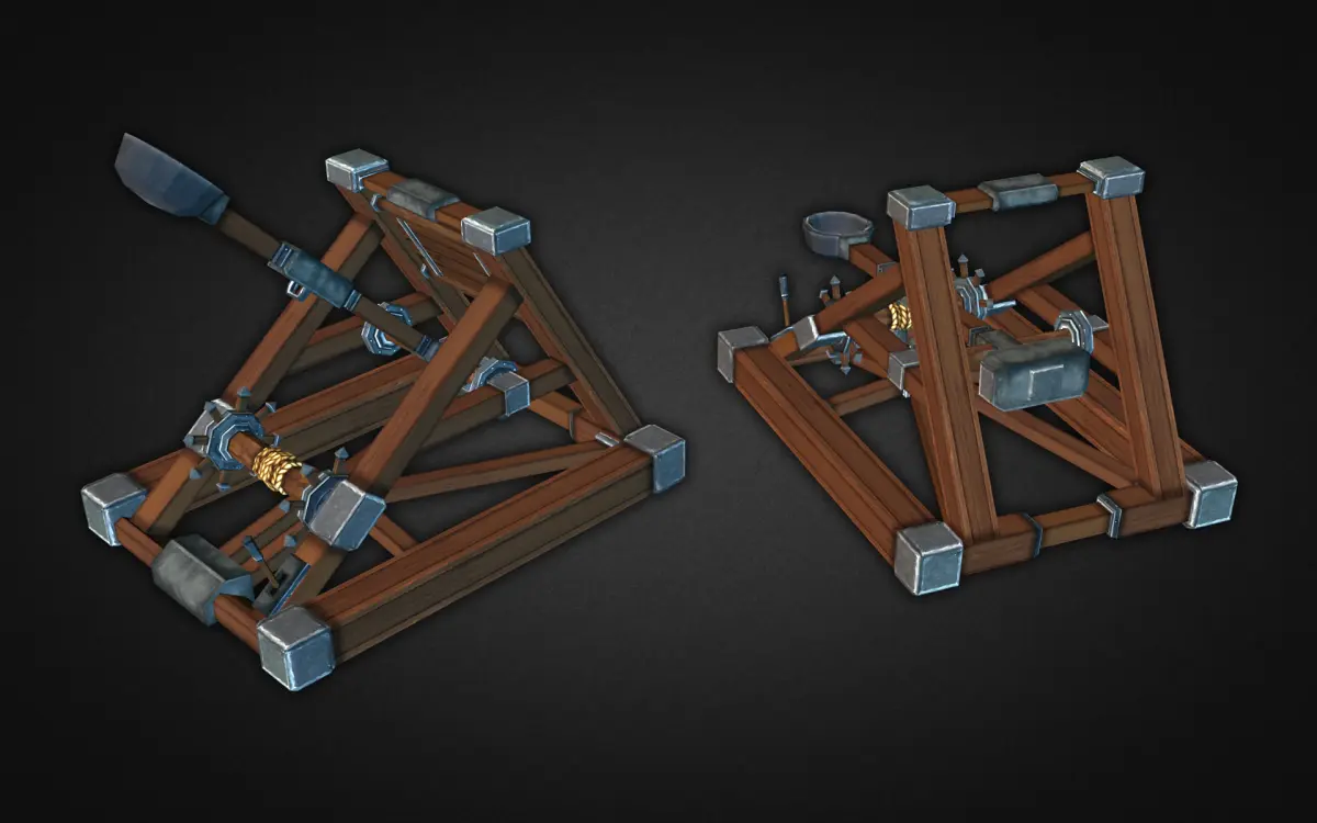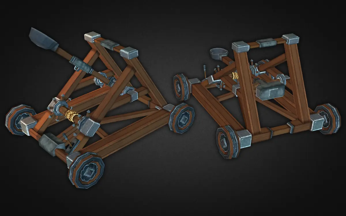 * Low Poly (1760 Poly - 1879 Verts) (Catapult with wheels, and armor)