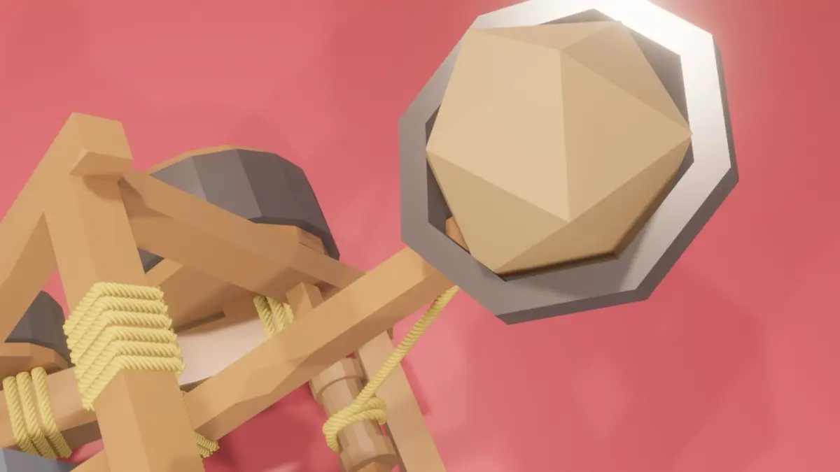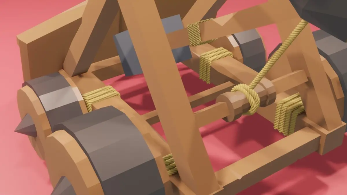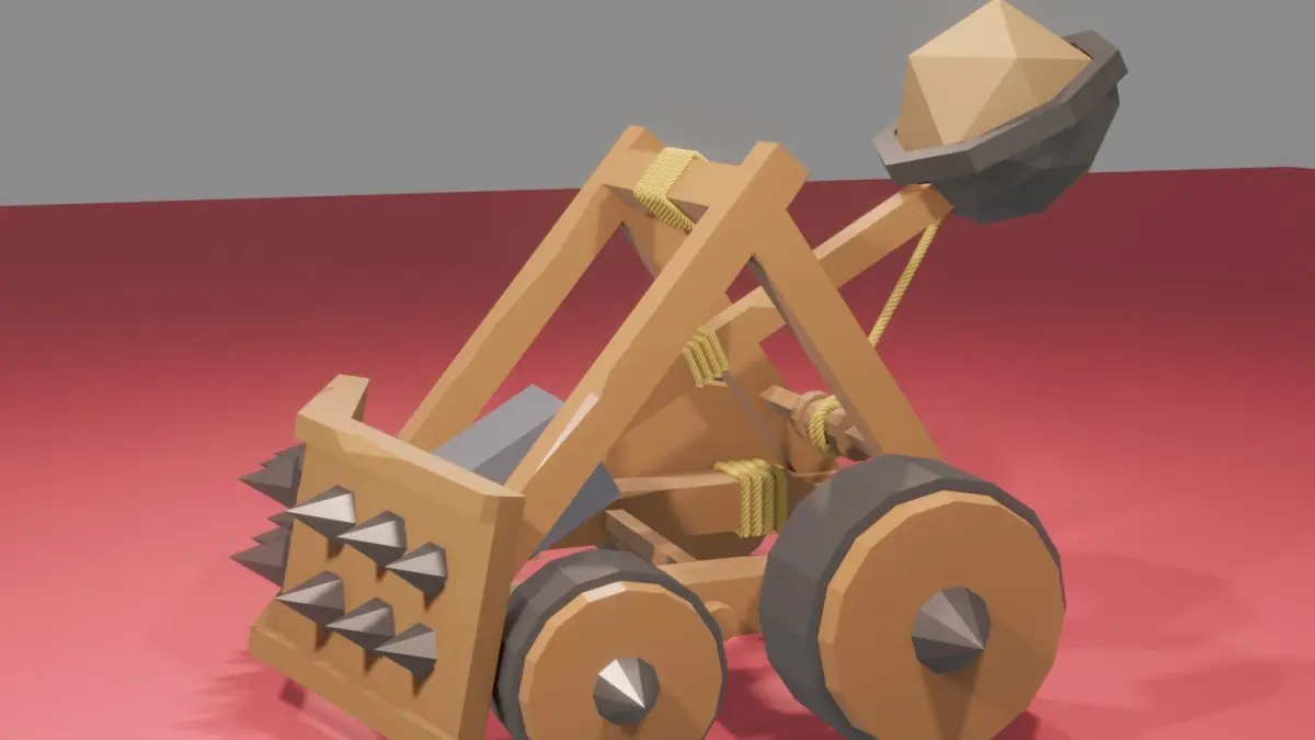 Catapult Low Poly 3d Model wooden cannon Low-poly 3D model