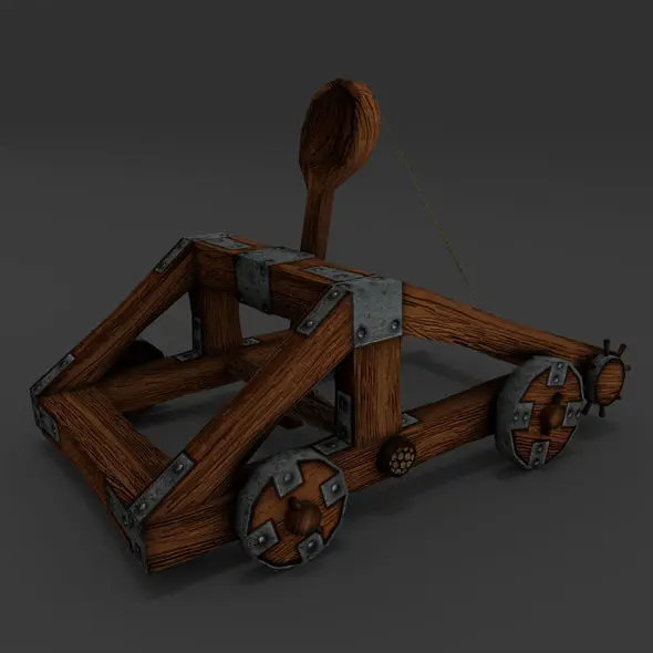 Catapult rigged Animation Low-Poly Free low-poly 3D model