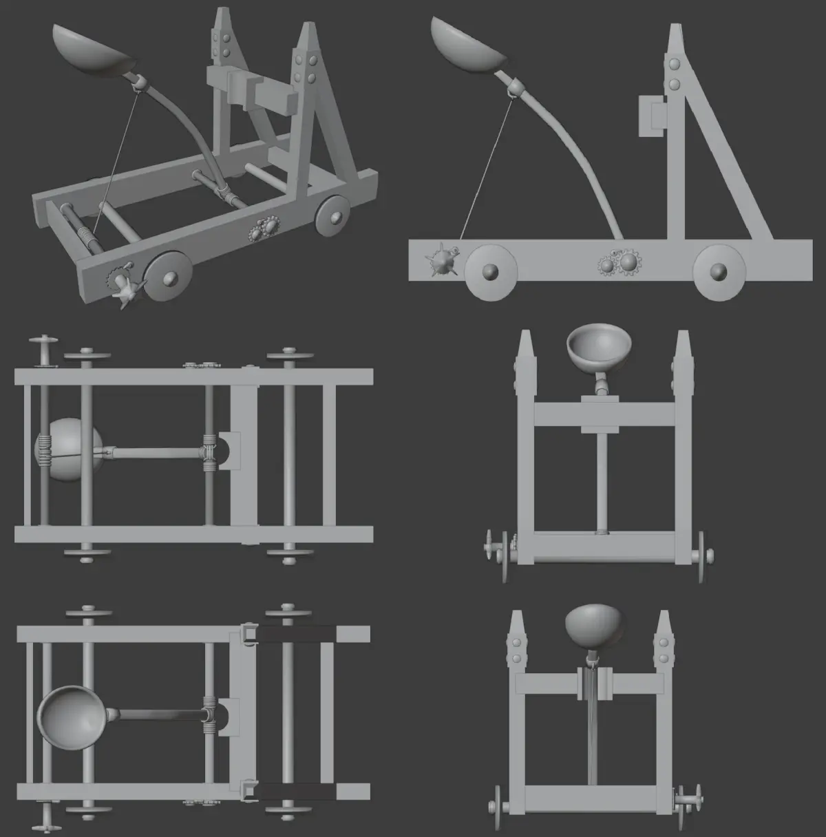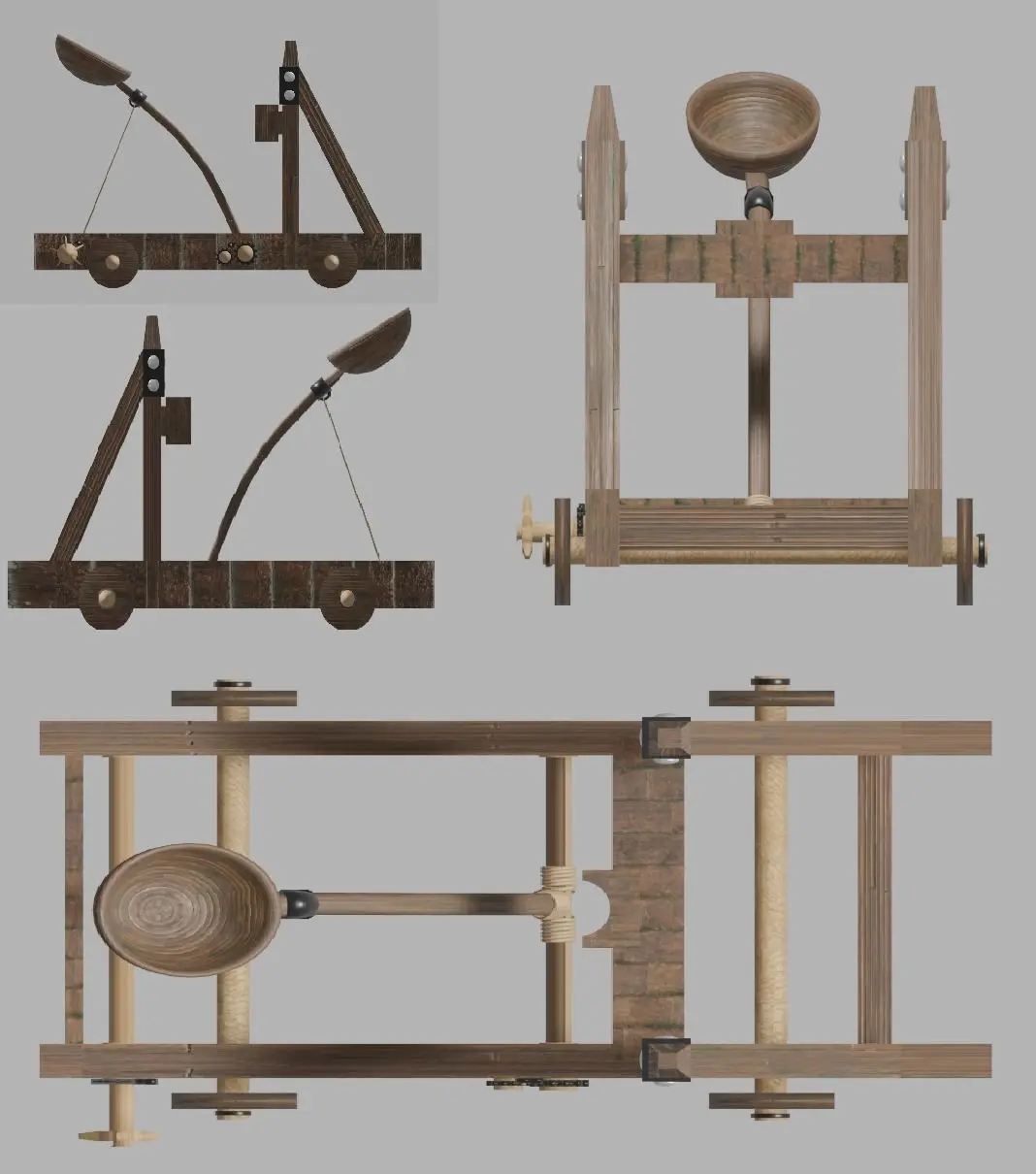 catapulta hecha en blender, tiene texturas usadas en madera y ya