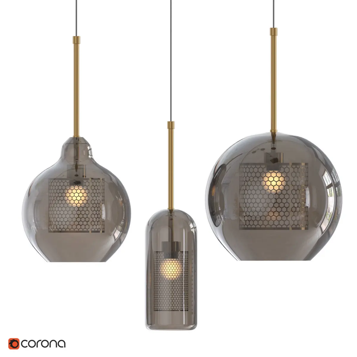 CATCH SMOKY - Series of loft pendant lamps made of perforated metal and tinted glass