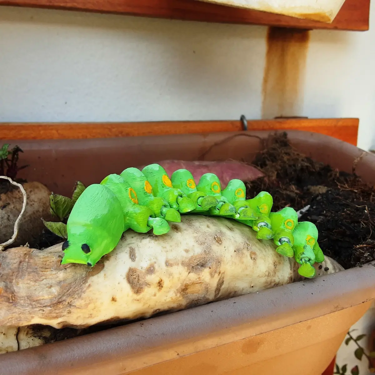Flexible and print-in-place caterpillar bug.