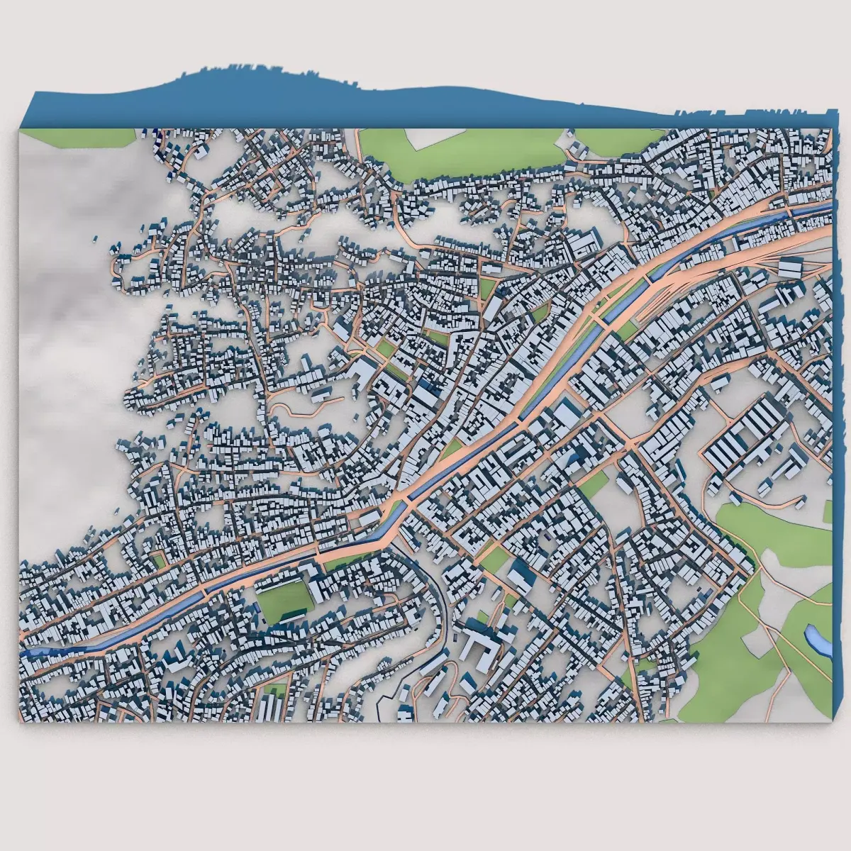 City maps and urban layoutsArchitectural and urban planning visualizationTopographic and geographic presentationsEducational projects and city studies3D printing and physical city modelsPresentations, visual mockups, and displays