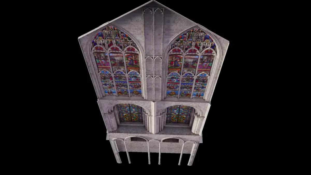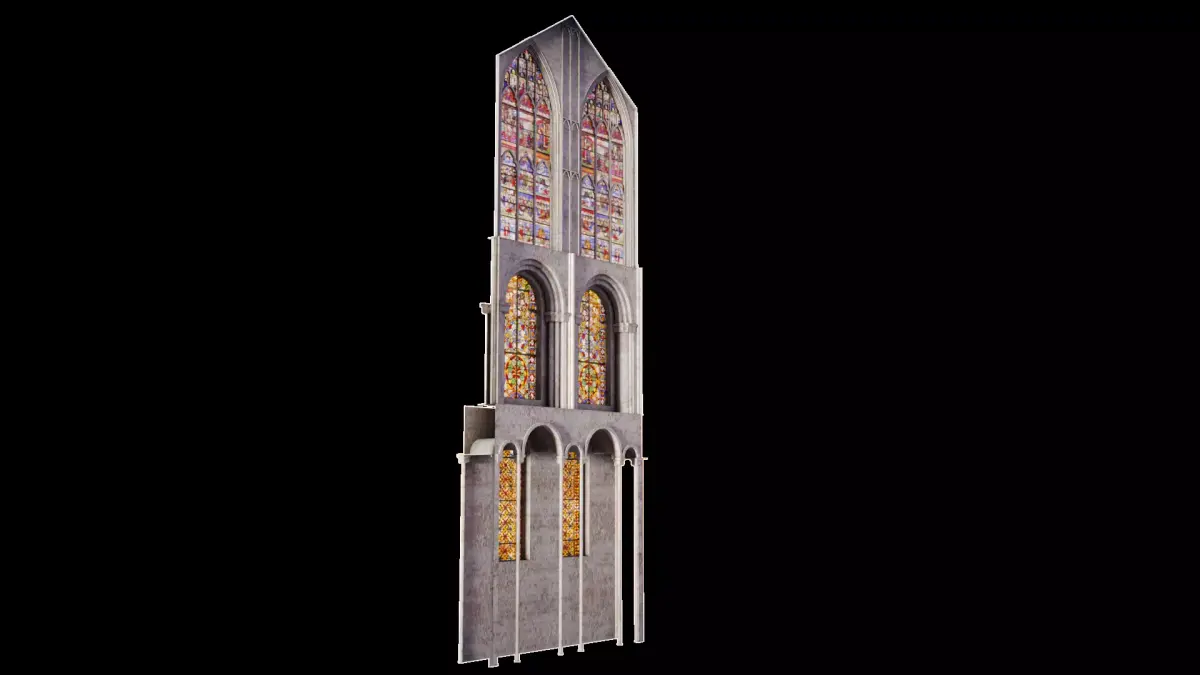 Before you proceed, notice that this model only contains the Stained Glass Wall of the Transept (as shown in the renders with the solid black background). If you want the entire Transept, check out my other models. If you want not only the entire Transept but the entire CHURCH check out my other products too because the full church interior is also available for purchase.