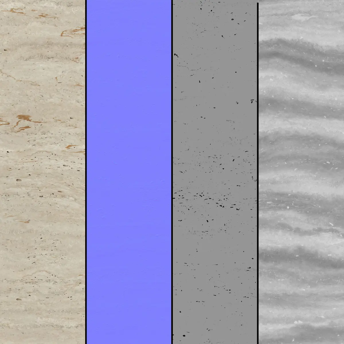 Base color PNG 8 bitNormalMap PNG 16 bitRoughness PNG 16 bitDisplacement PNG 16 bit