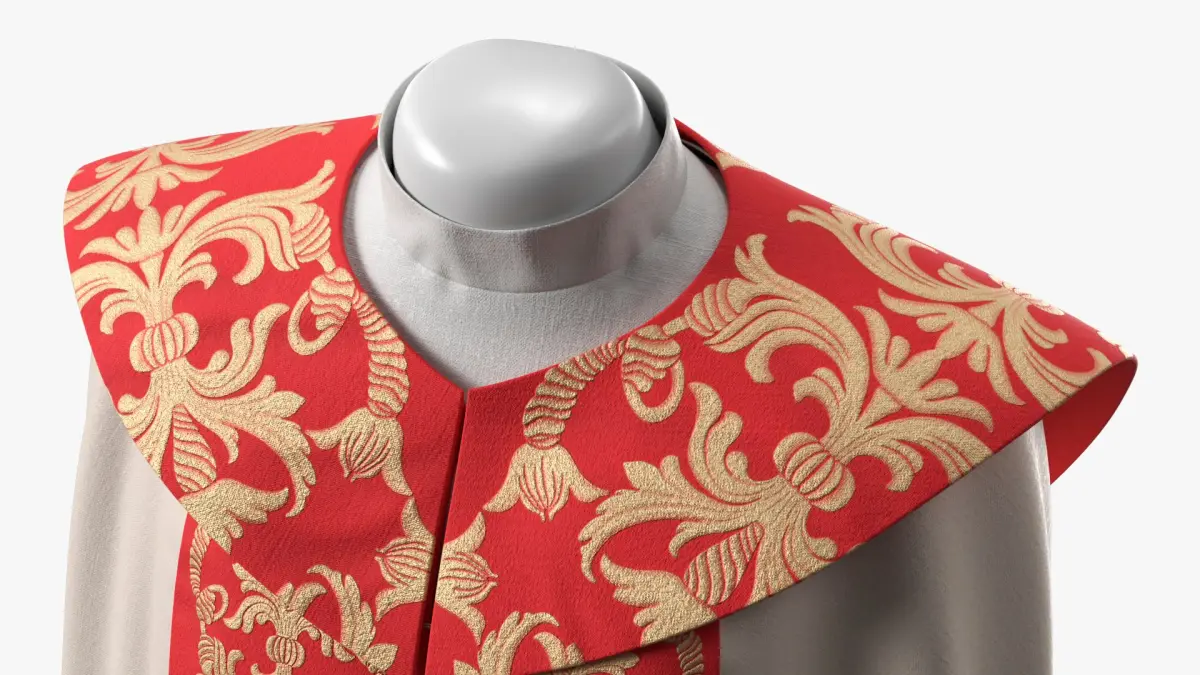 Catholic Liturgical Chasuble with Stole White is a high quality, photo real 3d model that will enhance detail and realism to any of your rendering projects. The model has a fully textured, detailed design that allows for close-up renders, and was originally modeled in 3ds Max 2020 and rendered with V-Ray. Renders have no postprocessing!